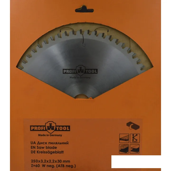 Диск пильный по дереву 250х3.2х2.2х30 мм, Z=60, форма зуба Wneg (ATBneg), поперечный рез PROFITOOL ( ПРОФИТУЛ )