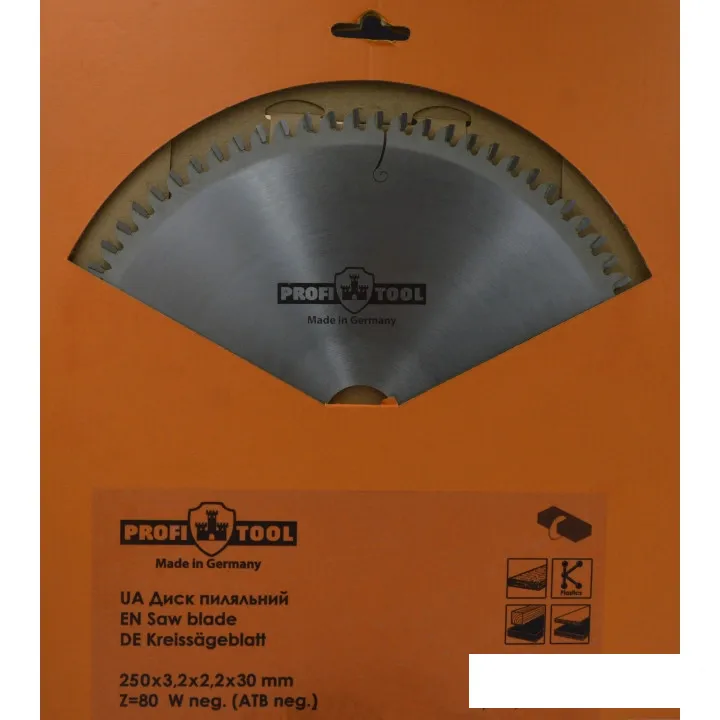 Диск пильный по дереву 250х3.2х2.2х30 мм, Z=80, форма зуба Wneg (ATBneg), поперечный рез PROFITOOL ( ПРОФИТУЛ )