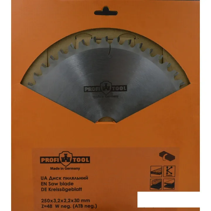 Диск пильный по дереву 250х3.2х2.2х30 мм, Z=48, форма зуба Wneg (ATBneg), поперечный рез PROFITOOL ( ПРОФИТУЛ )