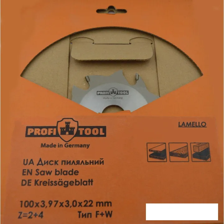 Диск пильный по дереву 100х3.97х3.0х22 мм, LAMELLO-System, Z=2+4, форма зуба F+W, для пазов PROFITOOL ( ПРОФИТУЛ )