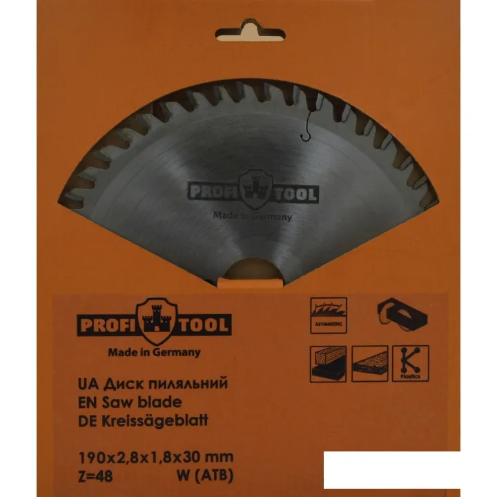Диск пильный по дереву 190х2.8х1.8х30 мм, Z=48, форма зуба W (ATB), продольный+поперечный рез PROFITOOL ( ПРОФИТУЛ )
