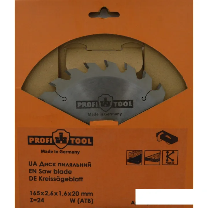 Диск пиляльний PROFITOOL - 165х2,6х1,6х20 мм Z=24, W (ATB) (2116501)