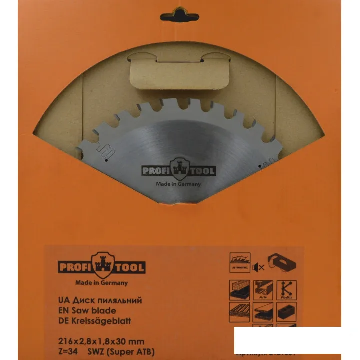 Диск пильный универсальный 216х2.8х1.8х30 мм, Z=34, форма зуба S-WZ (Super-ATB), продольный+поперечный рез PROFITOOL ( ПРОФИТУЛ )