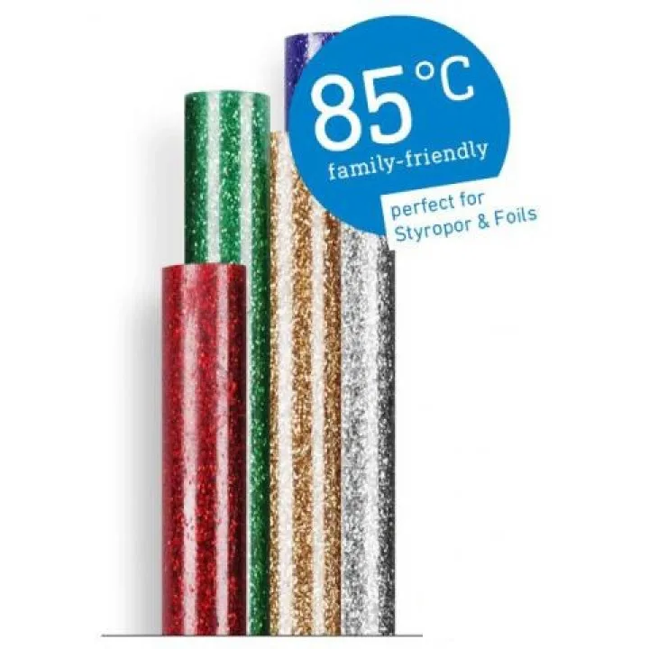 Блискучий клей для рукоділля з температурою 85°C для блискучого склеювання при низьких температурах. Ідеально підходить для створення виробів і декорування, навіть із чутливими до температури матеріалами. Клей, що не містить розчинників, для термоклейового пістолета STEINEL GlueMatic 1007-LT. Вміст: 4х золотий, 4х срібний, 4х червоний, 2х зелений, 2х синій