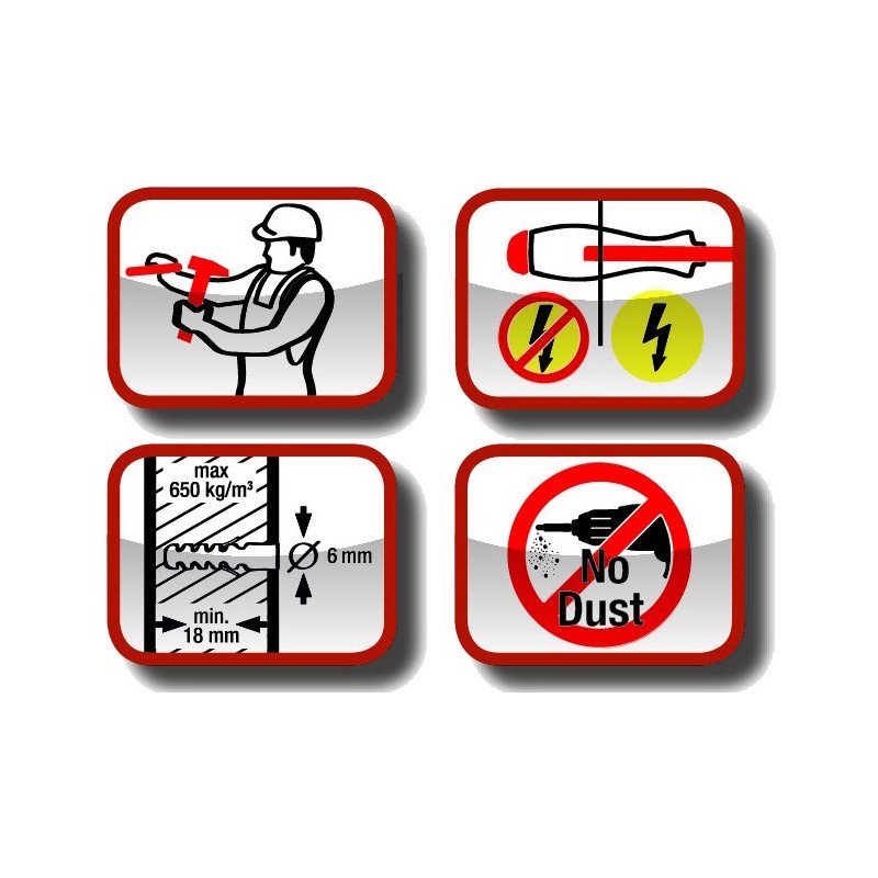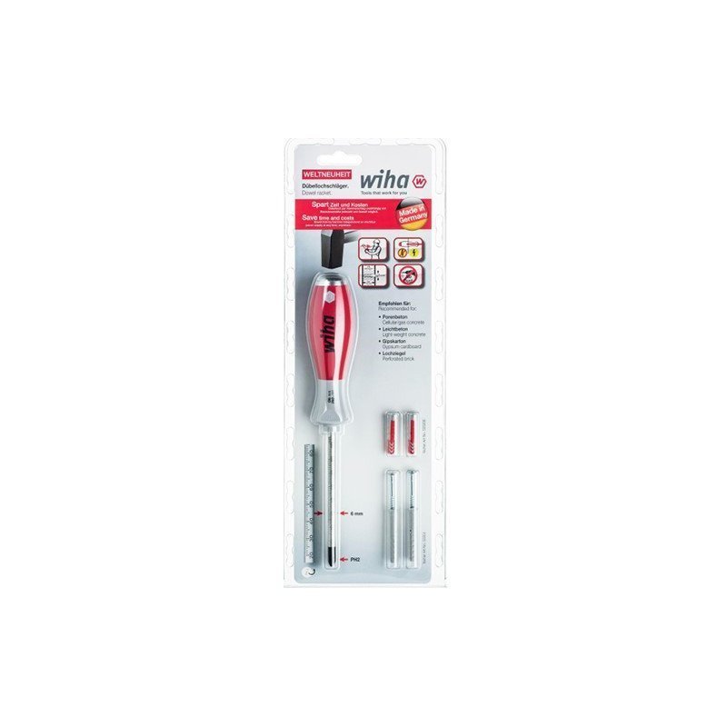 Исполнение: специальная конструкция инструмента внутри обеспечивает гальваническое разделение между жалом и твердым стальным колпачком рукоятки. Это обеспечивает легкость и быстроту забивания дюбельных центрирующих отверстий без сверления, лишнего шума и пыли. Профиль PH2 также оптимизирован для максимально возможной защиты от повреждений при забивании в стену.