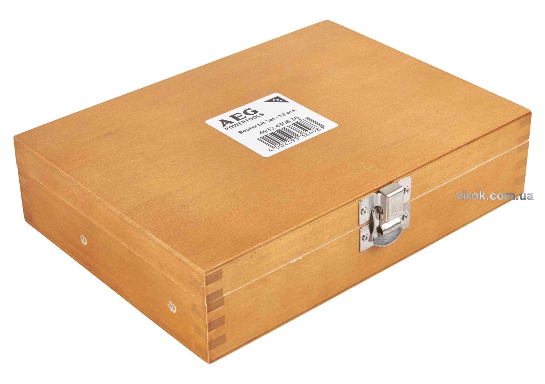 Набір фрез AEG зі шпінделем Ø= 8 мм, в деревяному футлярі, 12 шт