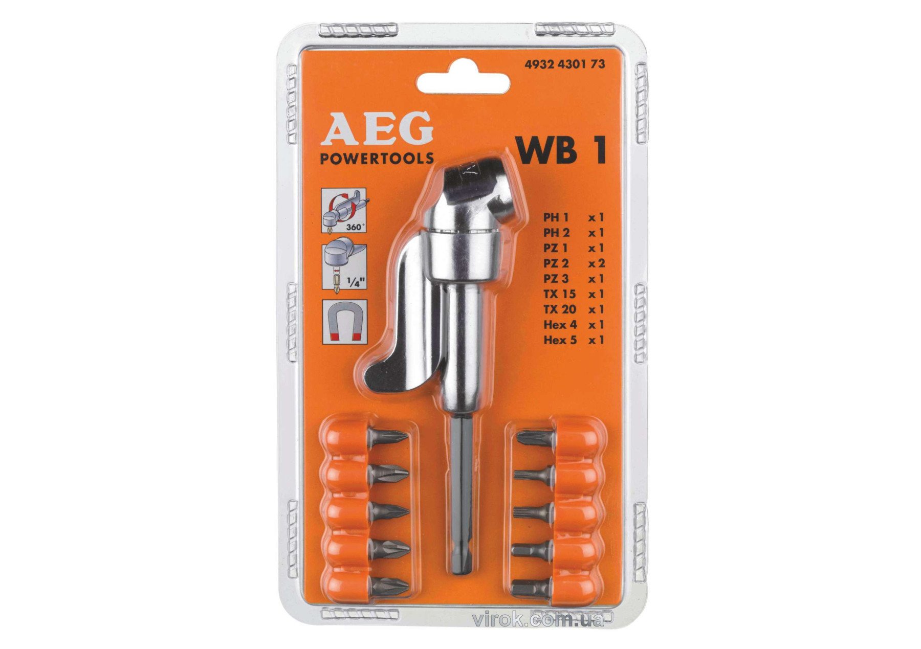 Насадка кутова до шурупокрутів AEG з 10 викрутковими насадками в упаковці