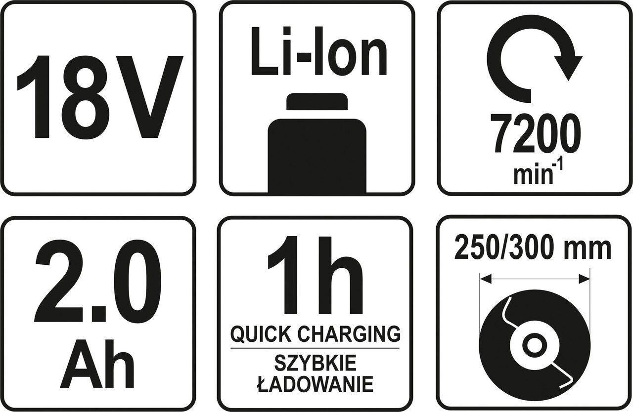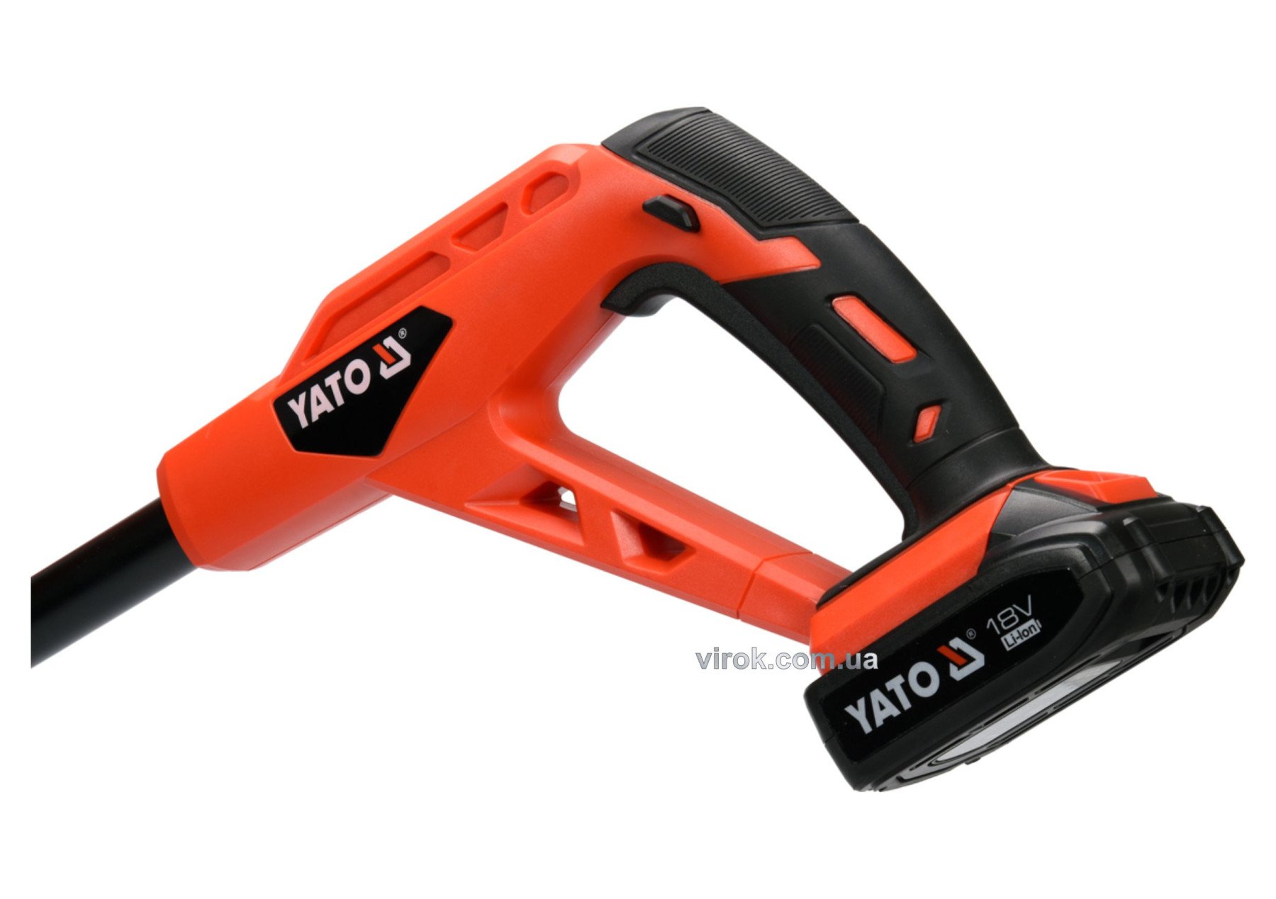 YATO Газонокосарка акумуляторна Li-Ion 18 В, 2 АГод, обрізний діап. Ø=25/30 см, з зарядним пристроєм