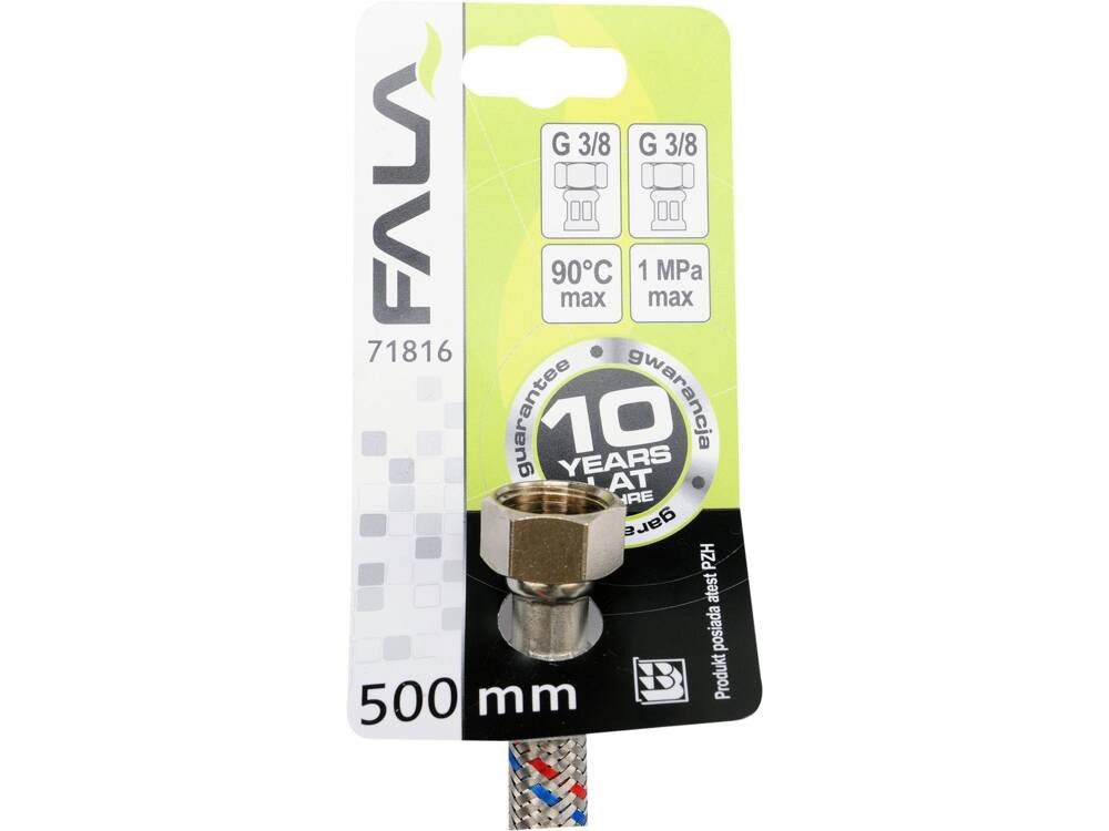 Шланг водопровідний з опліткою з нерж сталі FALA l= 500мм, Ø= 8/12, з'єднання F-3/8" х F-3/8" 1 МПа