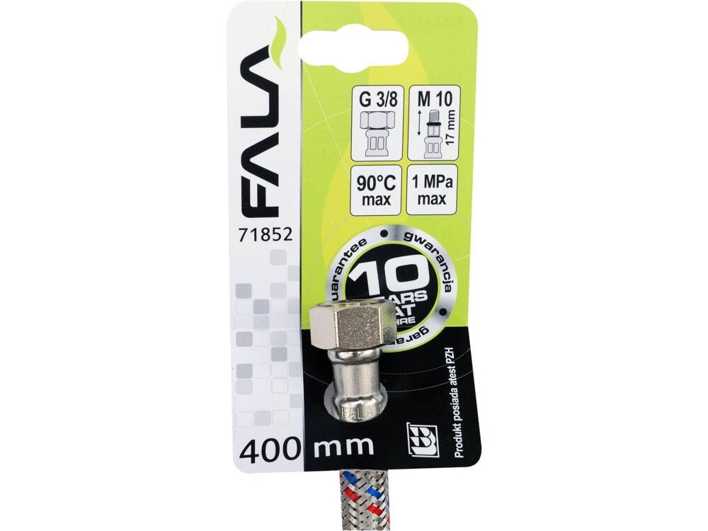 Шланг водопровідний з опліткою з нерж сталі FALA l= 400мм Ø= 8/12, з'єдн F-3/8" х M-M10x1- 17мм 1МПа