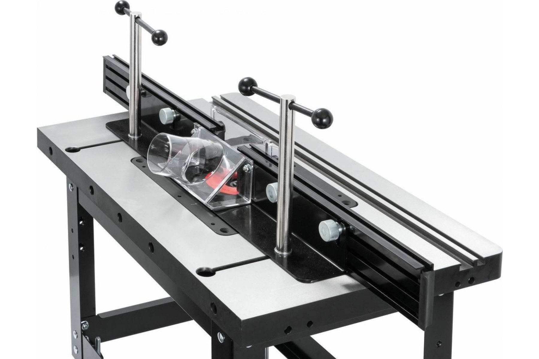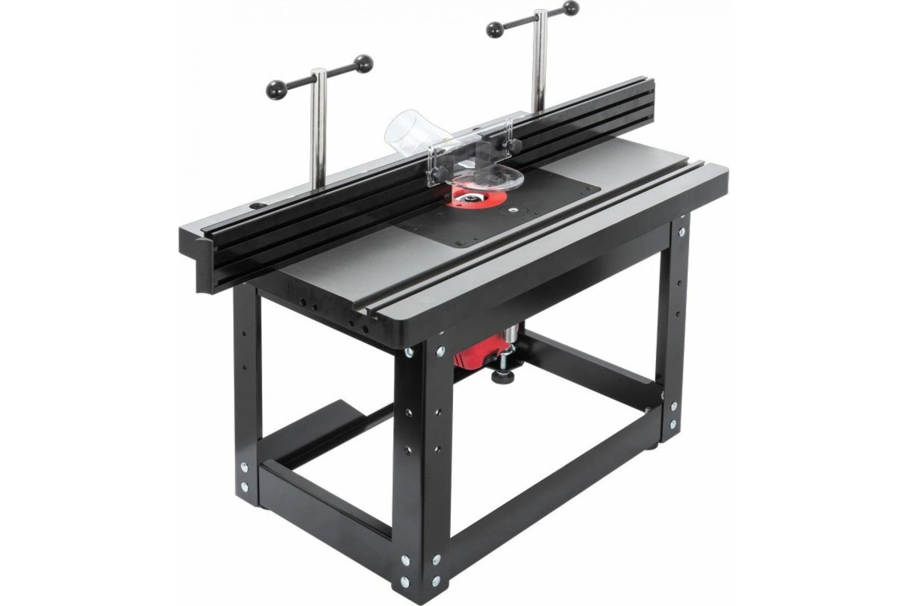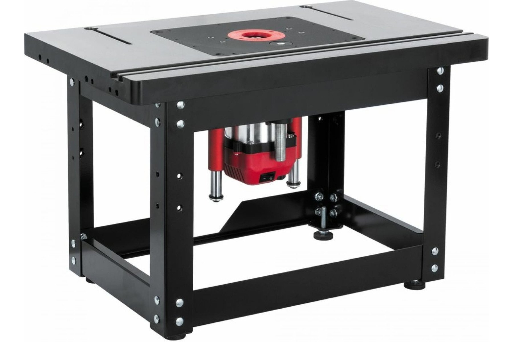 Підставка відкрита для фрезерного столу 98600W. Зроблена зі сталевого профілю, оснащена ніжками, що регулюються, з гумовими накладками. Розміри (ДхШхВ) – 560х370х365 мм, вага – 6 кг. Особливості: Корпус із чавунного лиття Два Т-подібні пази Два прорізи для кріплення фрезерного упору Гвинти для регулювання висоти (рівня) пластини