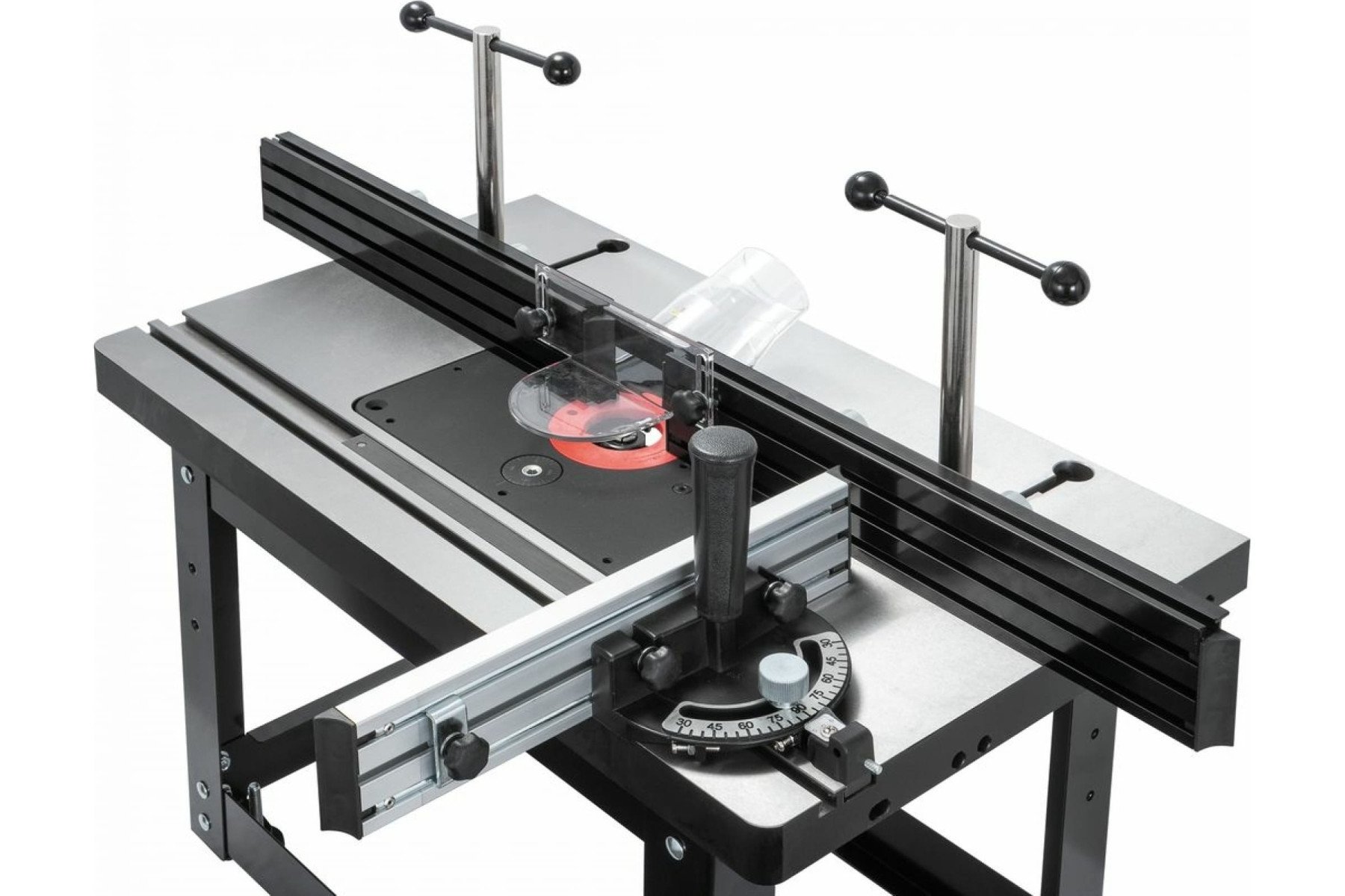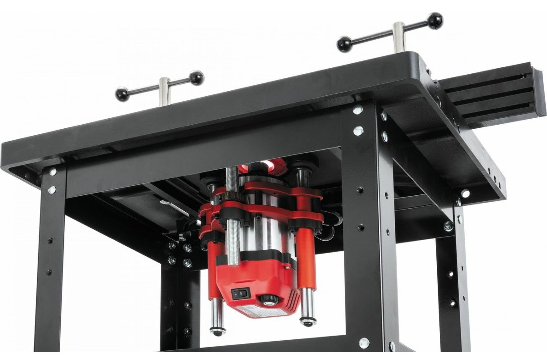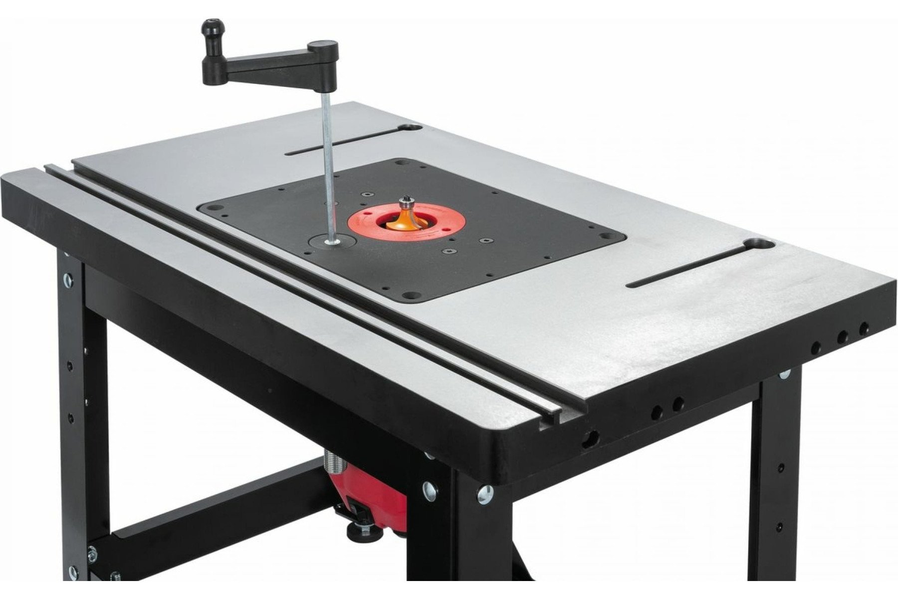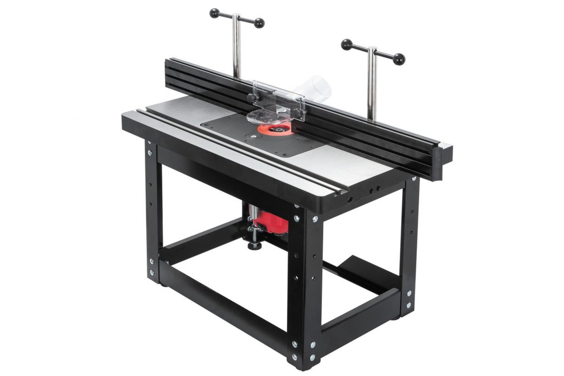 Підставка відкрита для фрезерного столу 98600W. Зроблена зі сталевого профілю, оснащена ніжками, що регулюються, з гумовими накладками. Розміри (ДхШхВ) – 560х370х365 мм, вага – 6 кг. Особливості: Корпус із чавунного лиття Два Т-подібні пази Два прорізи для кріплення фрезерного упору Гвинти для регулювання висоти (рівня) пластини