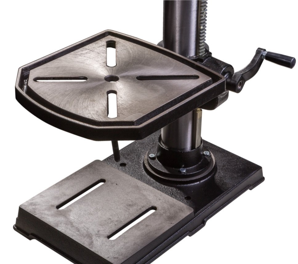 Підстава, стіл та голова верстата відлиті із сірого чавуну. Голова встановлена на товстостінні труби, що ефективно гасить вібрації. Стіл має можливість повороту в обидві сторони на 45 градусів, а також можливість підйому та опускання. Стіл обертається за годинниковою та проти годинникової стрілки навколо колони. Так, наприклад, максимальна відстань від шпинделя до столу складає 470 мм. Верстат підключається до звичайної побутової мережі 220В, встановлюється на верстат або підстілля, передбачена можливість кріплення через основу. На верстат поширюється фірмова гарантія JET. У комплект поставки входить дорн, патрон свердлильний від 1 до 13 мм.