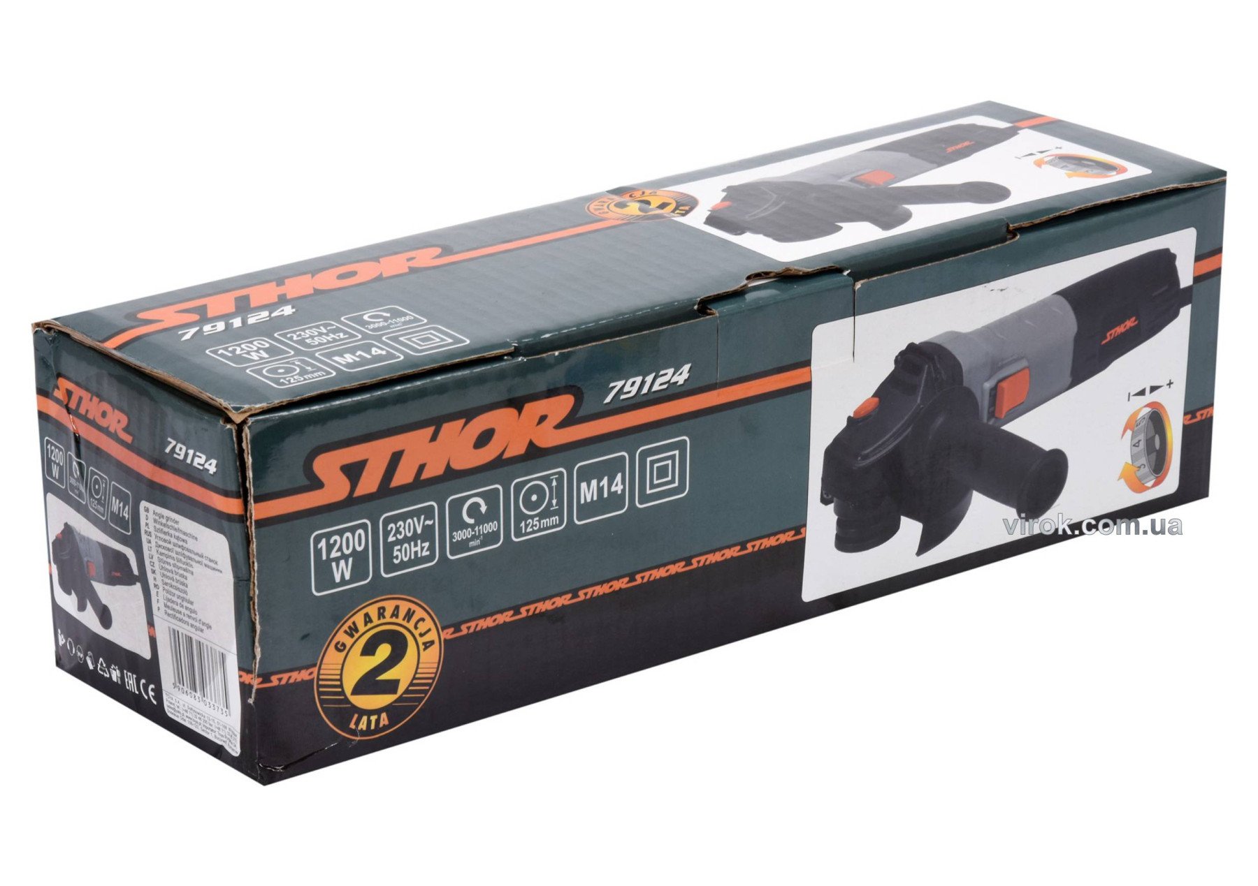 STHOR Шліфмашина кутова електромережева 230 В ,1200 Вт, Ø= 125мм,з регулюв. обертів 3000- 11000 об/хв | 79124