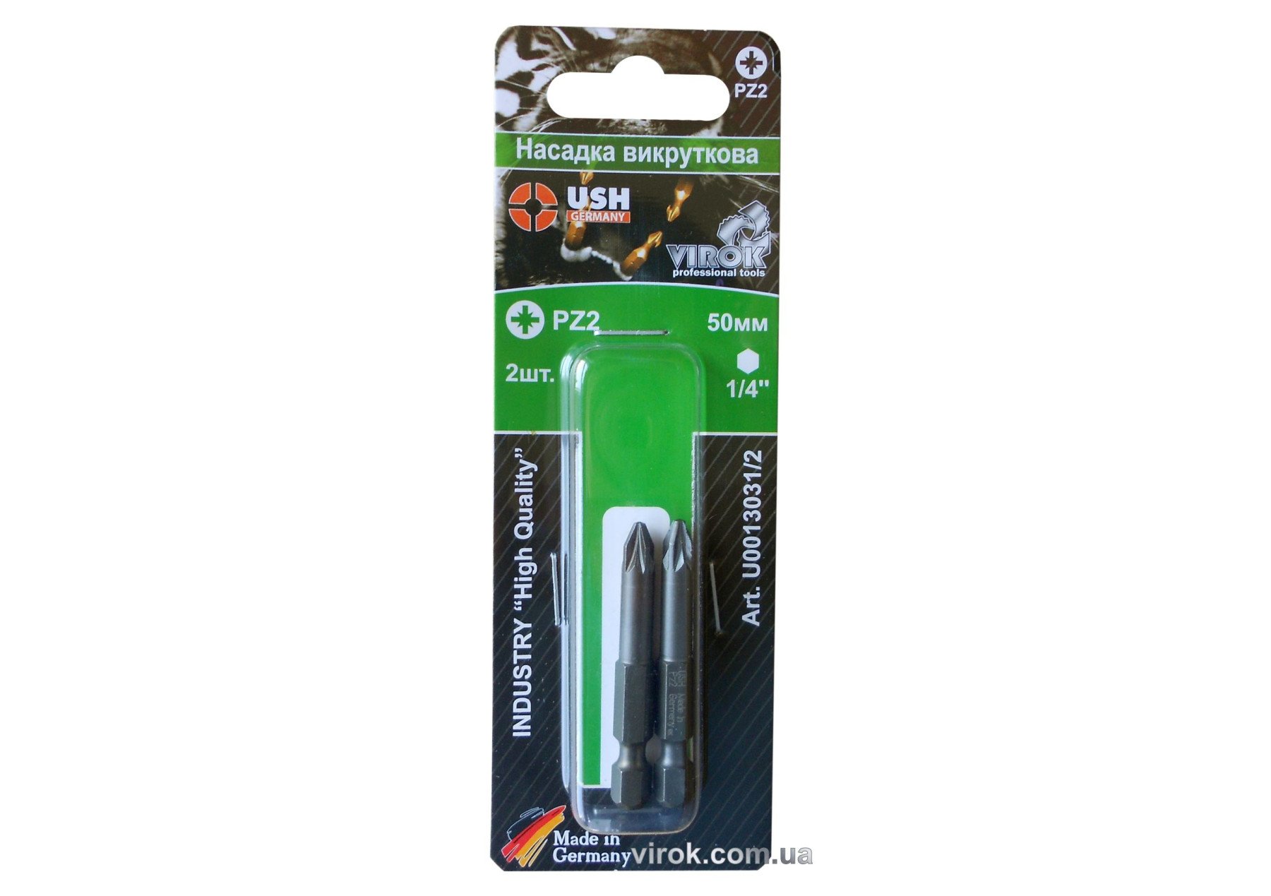 Насадка викруткова USH : POZIDRIV PZ2 x 50 мм, подовжена, Уп. 2 шт.(блістер)