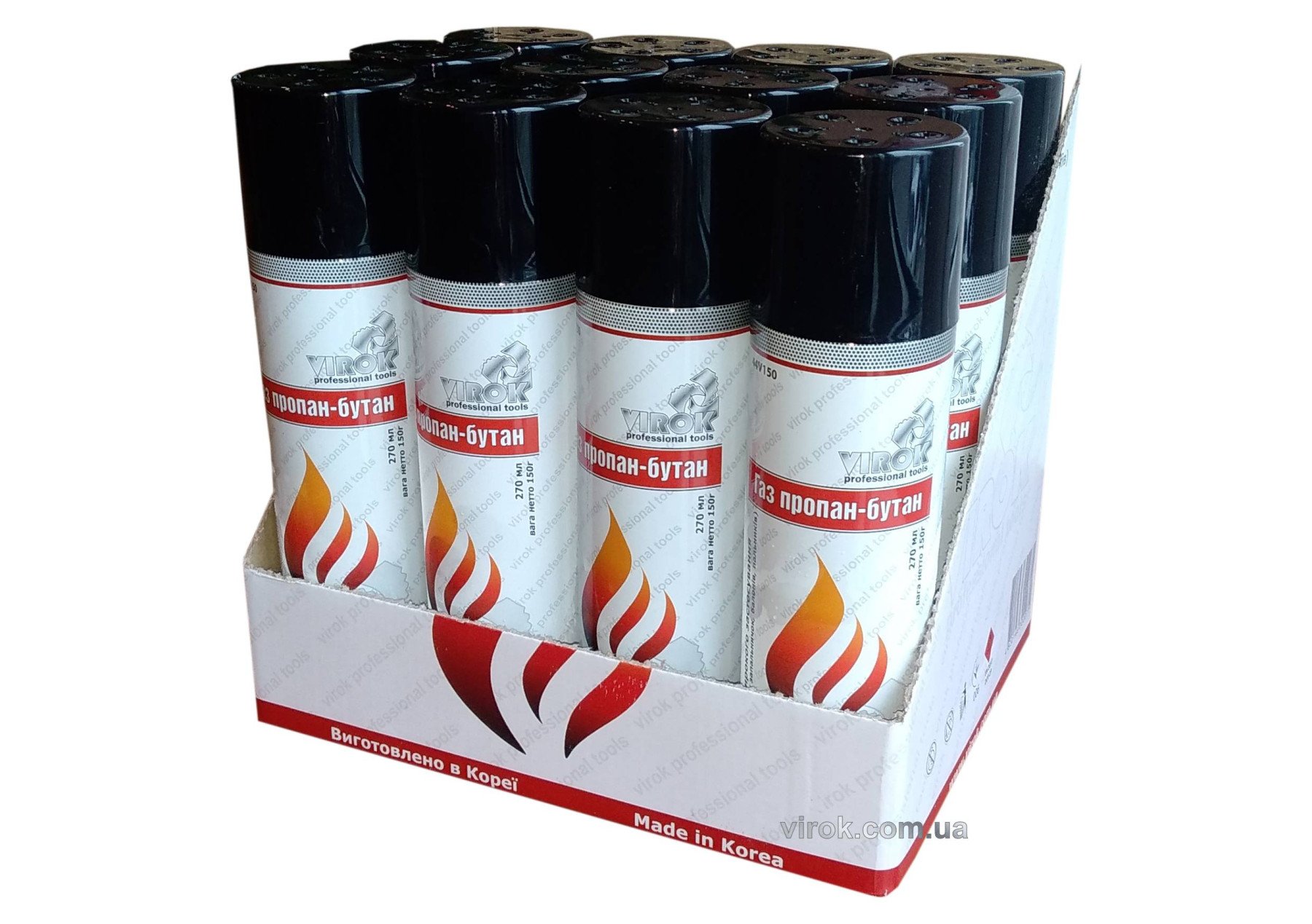 Балон газовий для запальничок VIROK 150g/250ml. 1-разовий (4 перехідників на кришці) [12 шт/уп]