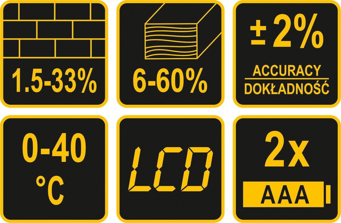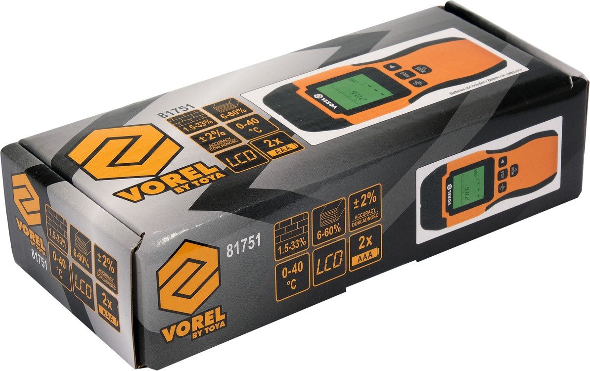 VOREL Вологомір електронний для деревини і будматеріалів YATO; діапазон вологості 6- 60% дерево, 1,5- 33% | 81751
