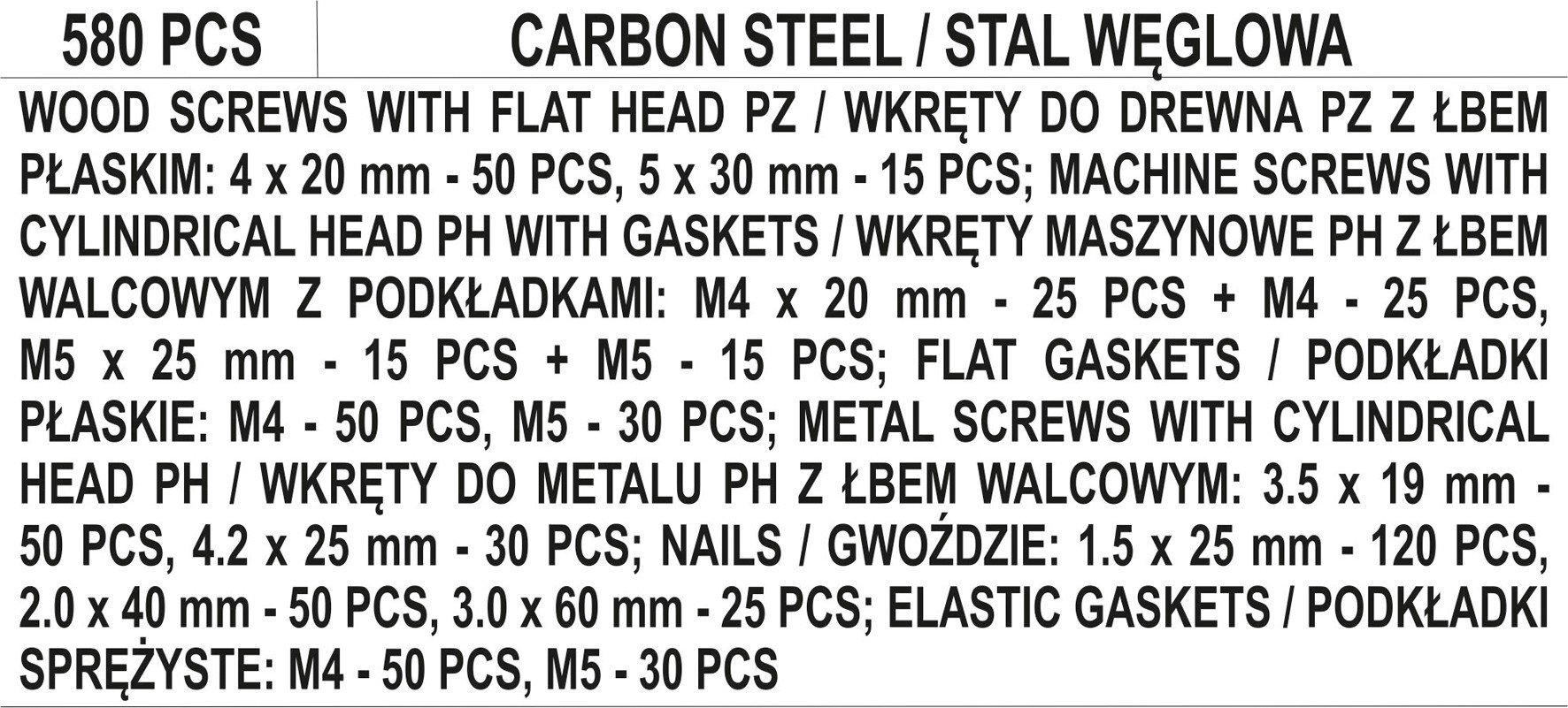VOREL Шурупи, цвяхи, шайби і гайки , набір 580 шт. | 24122