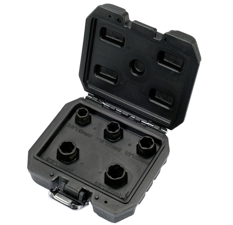 YATO Набір головок для видал. зломаних гвинтів YATO : квадрат 3/8", М10, 11, 13, 14, 16 мм, 5 шт. в футл. | YT-06038