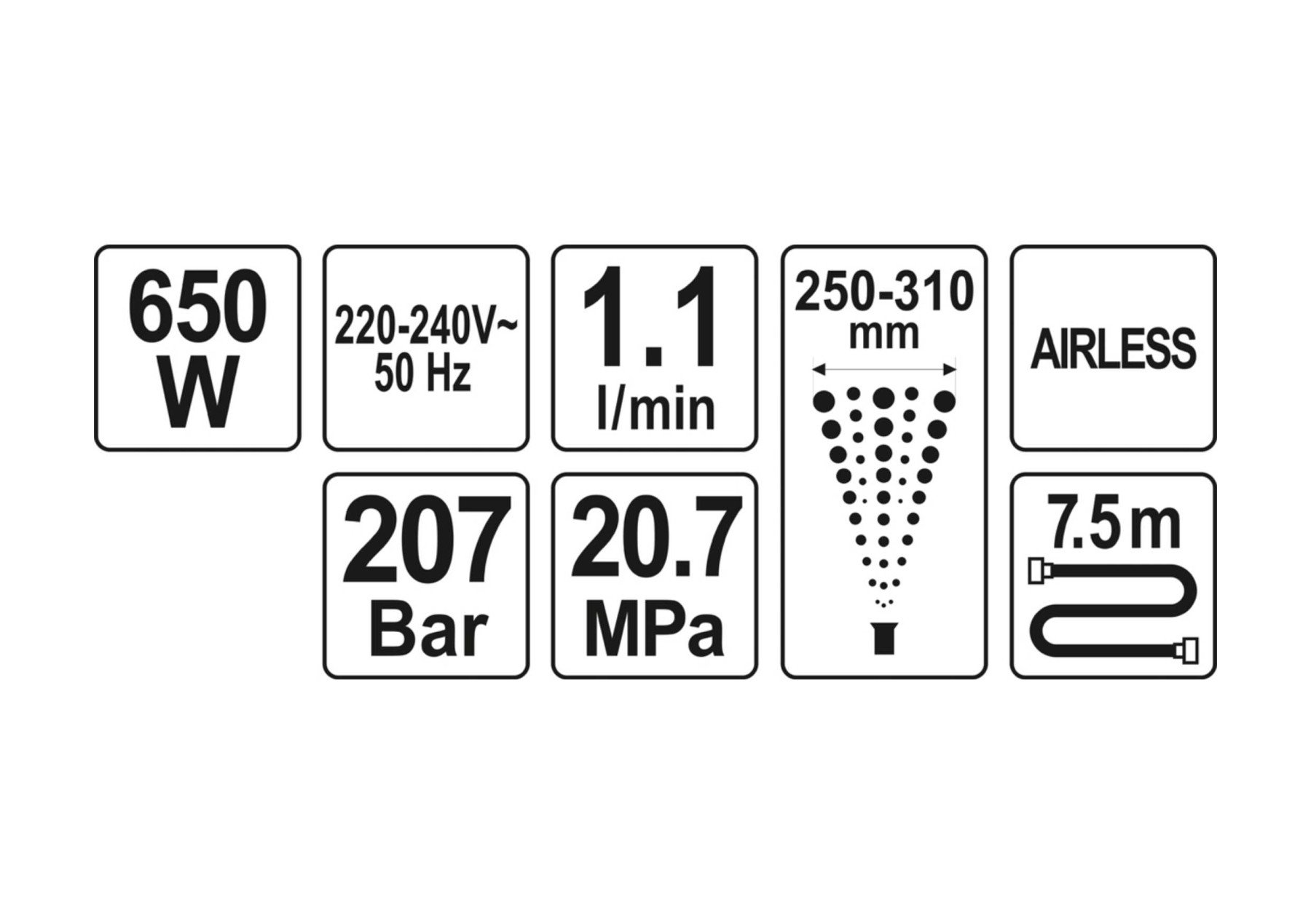 YATO Малярна станція гідродинамічна мережева 230В YATO, 650 Вт, витрата- 1,1 л/хв, шланг-7,5м | YT-82560