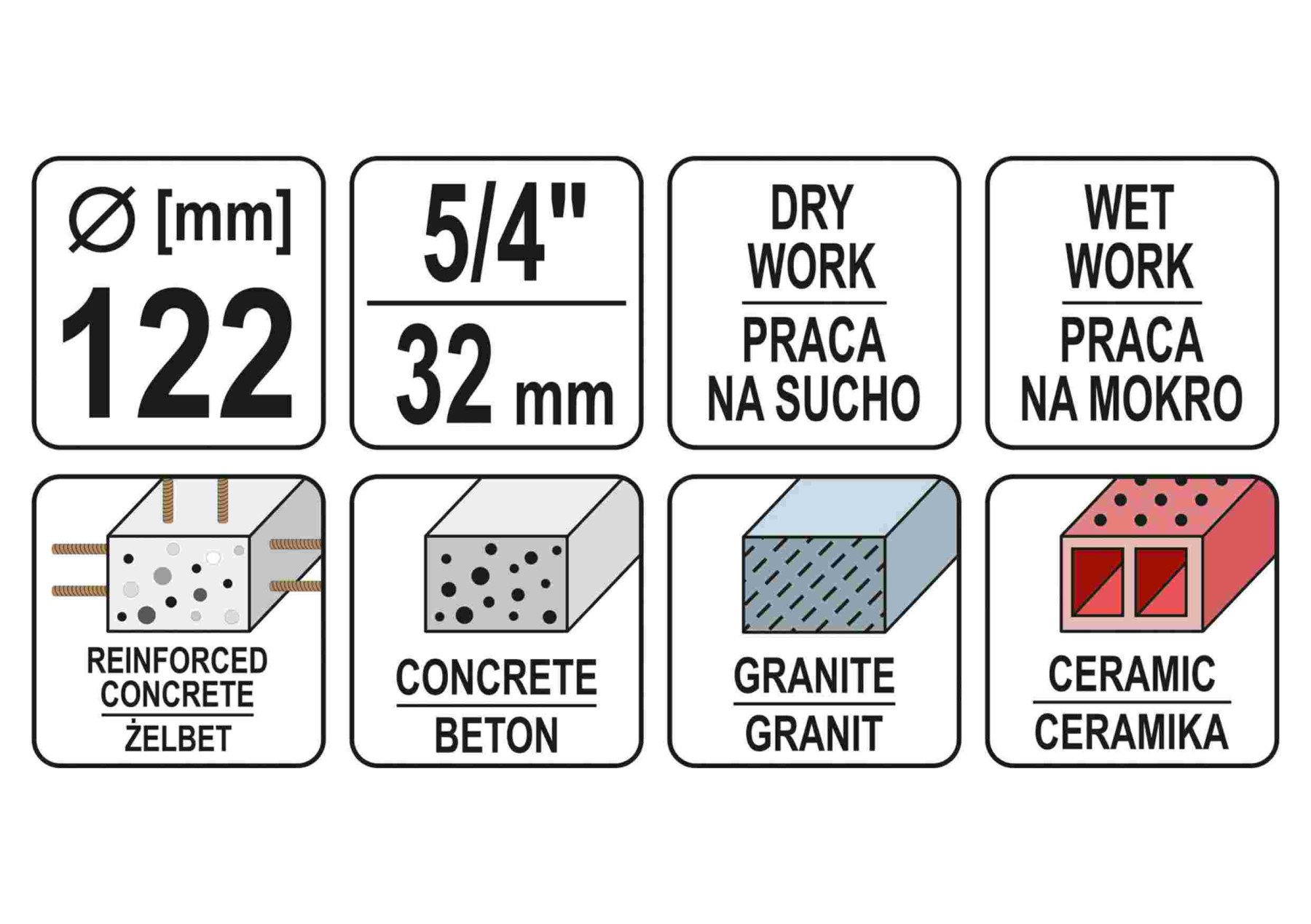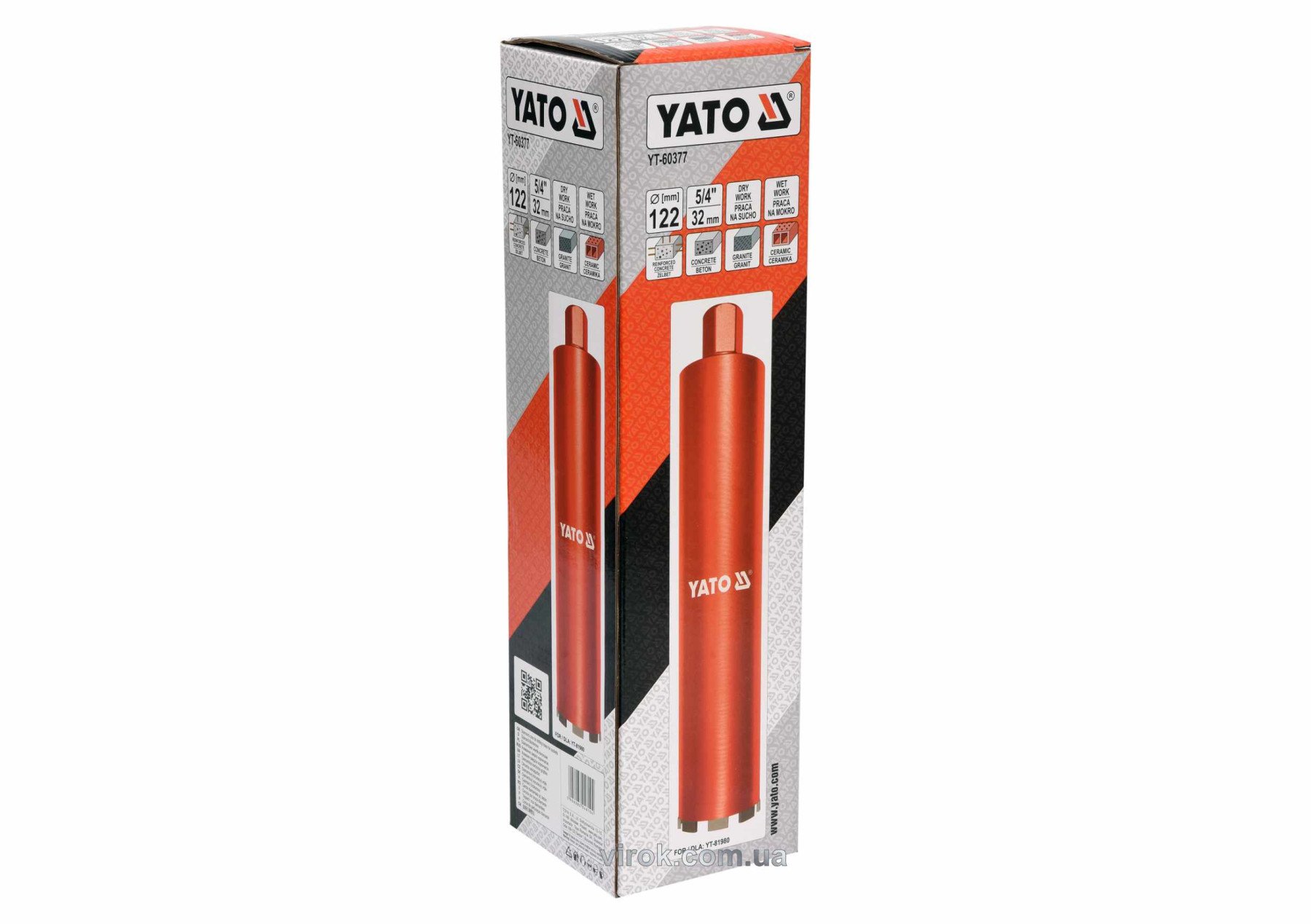 YATO Свердло корончате по каменю, бетону YATO: Ø=122мм, l=430мм, з алмазн. пругами, хвостовик- М32 | YT-60377
