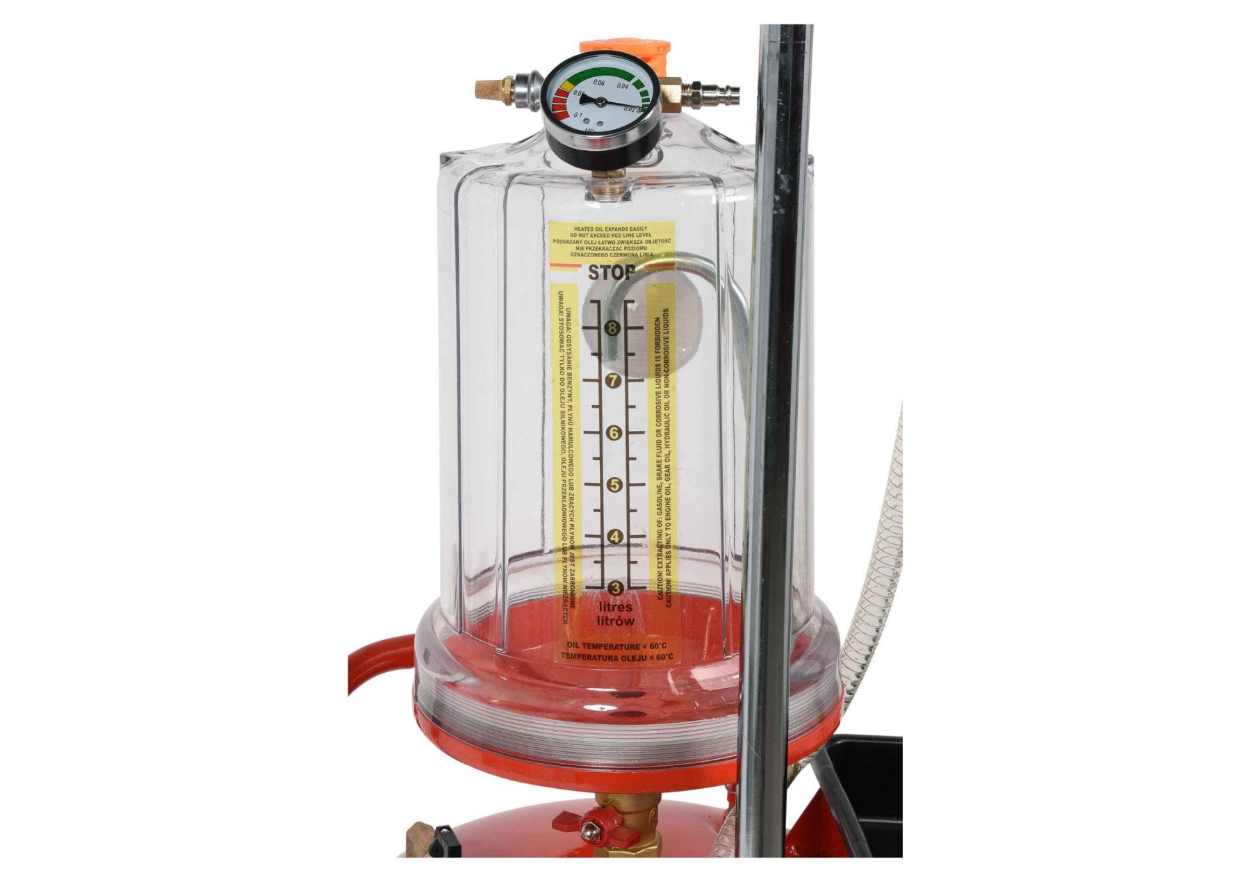 YATO Пристрій для зливу оливи на колесах пневмат. YATO: 90л, тиск випорож./всмоктув- 0.18/0.8MPa, 6зондів | YT-07190