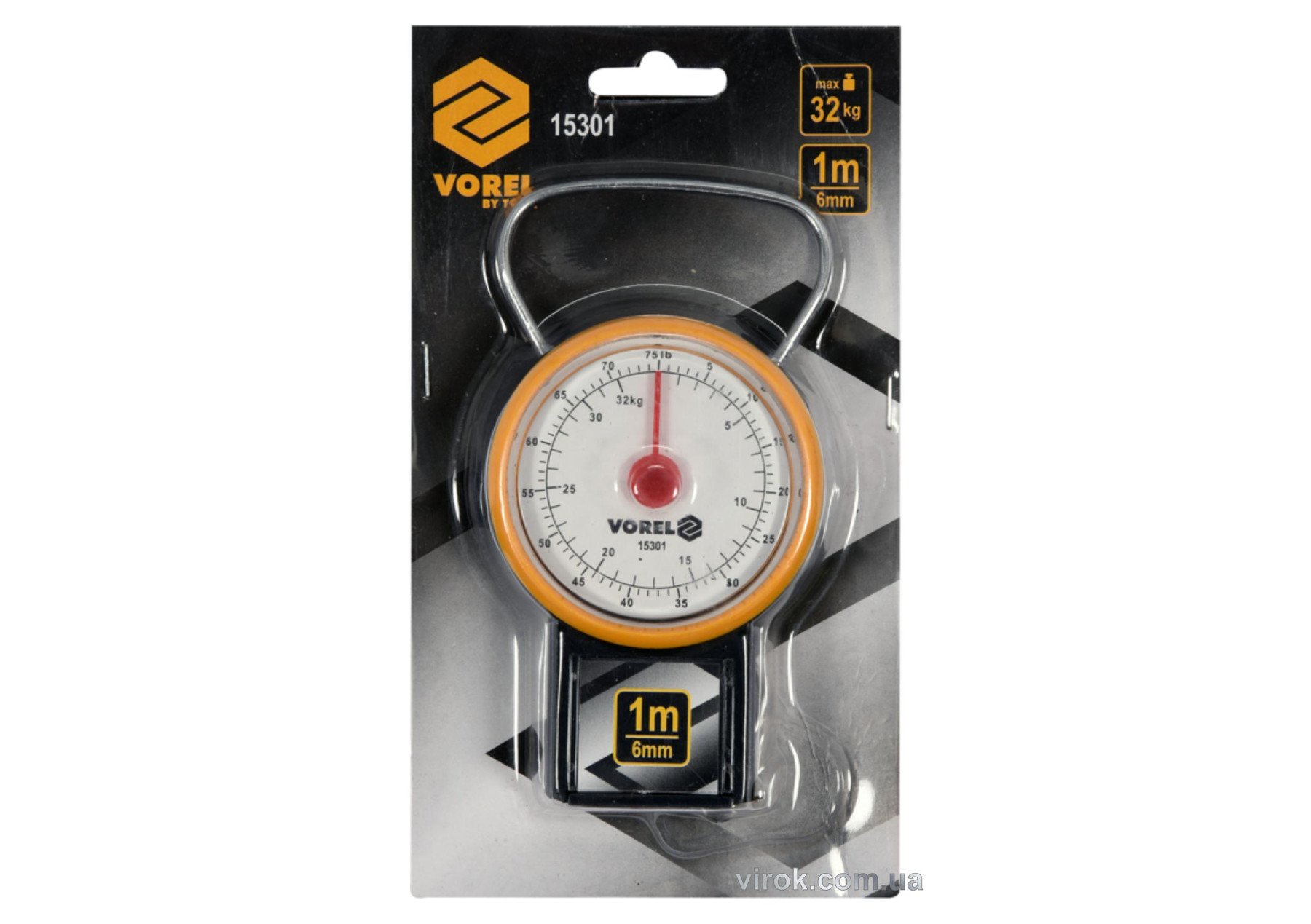Ваги ручні, підвісні, пружинні VOREL, до 32кг, з рулеткою- 1м і циферблат. шкалою- ±0,5 [36]