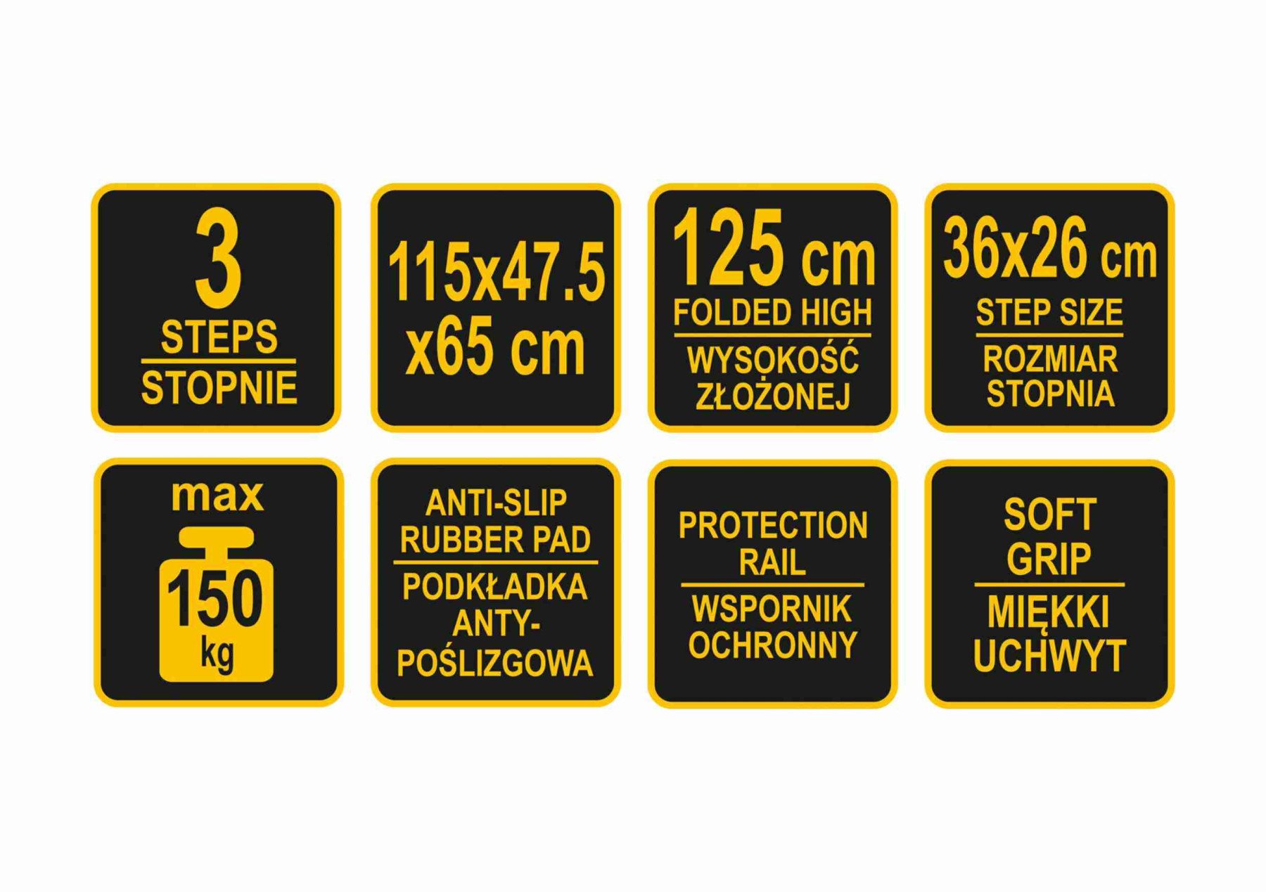 Драбина розкладна металева VOREL : 3 сходинки 36х26 см з антиковзальною прокладкою 115х47х65 см [2]