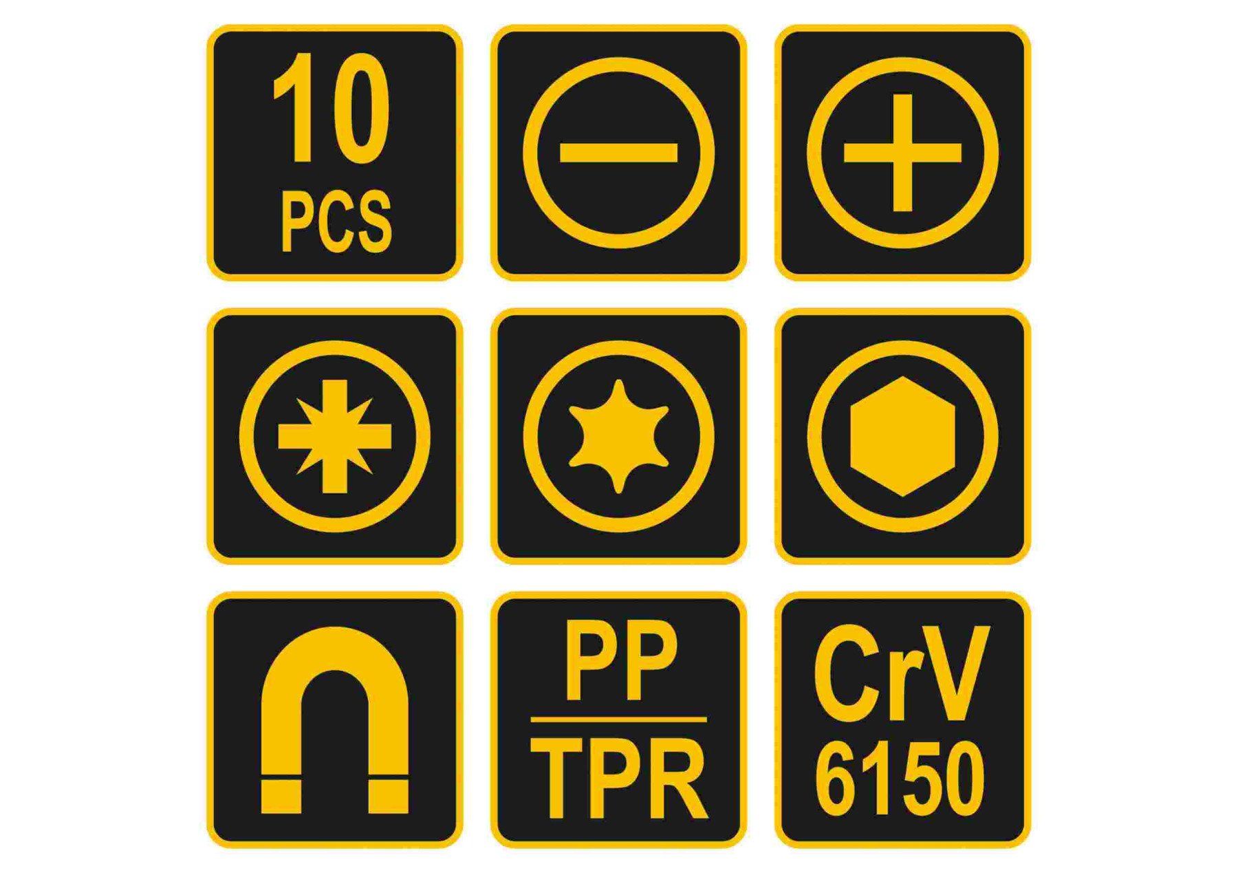 - Набір містить 5 двосторонніх насадок і тримач для біт