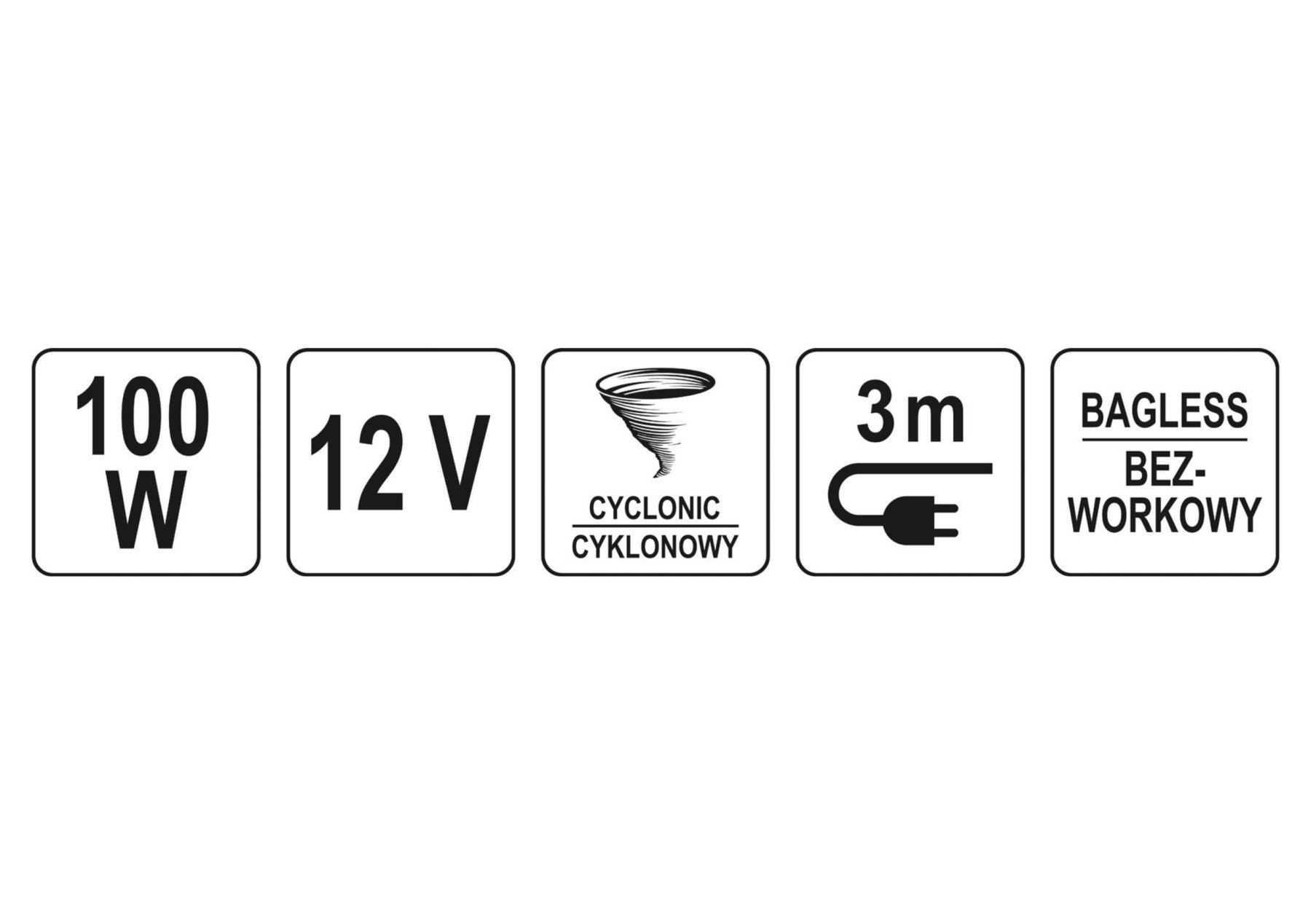 Порохотяг автомобільний STHOR : 12 В, 100 Вт, фільтр HEPA + насадки + сумка [9/72]