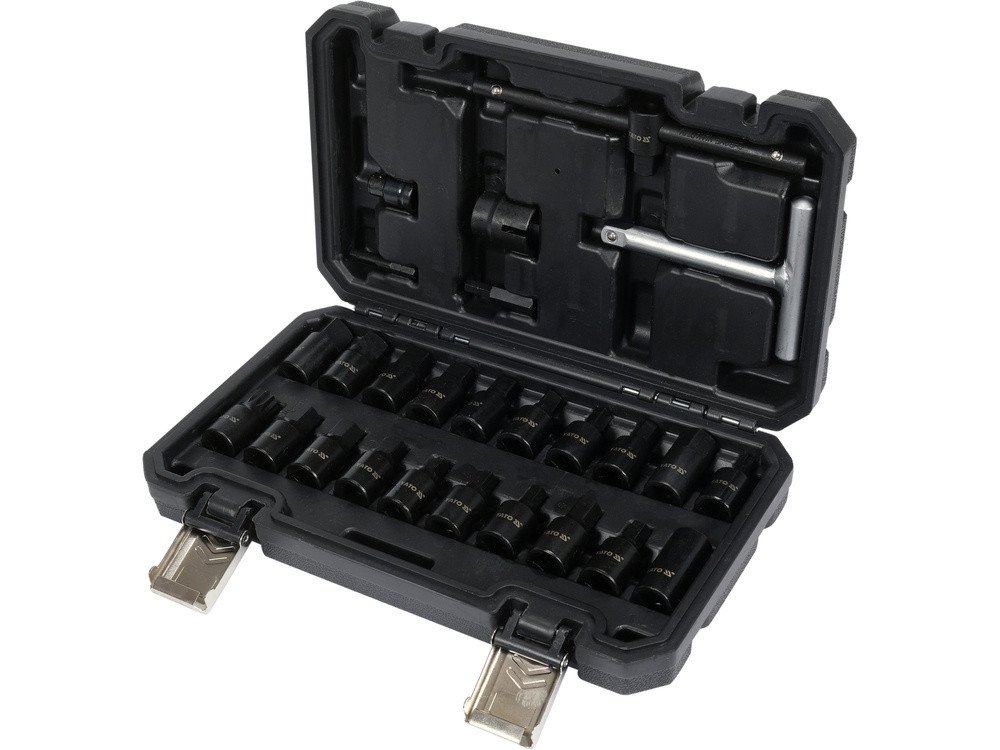Торцеві насадки з устаткуванням для оливозливних пробок YATO: квадрат- 3/8", Cr-V, 26 шт в футлярі