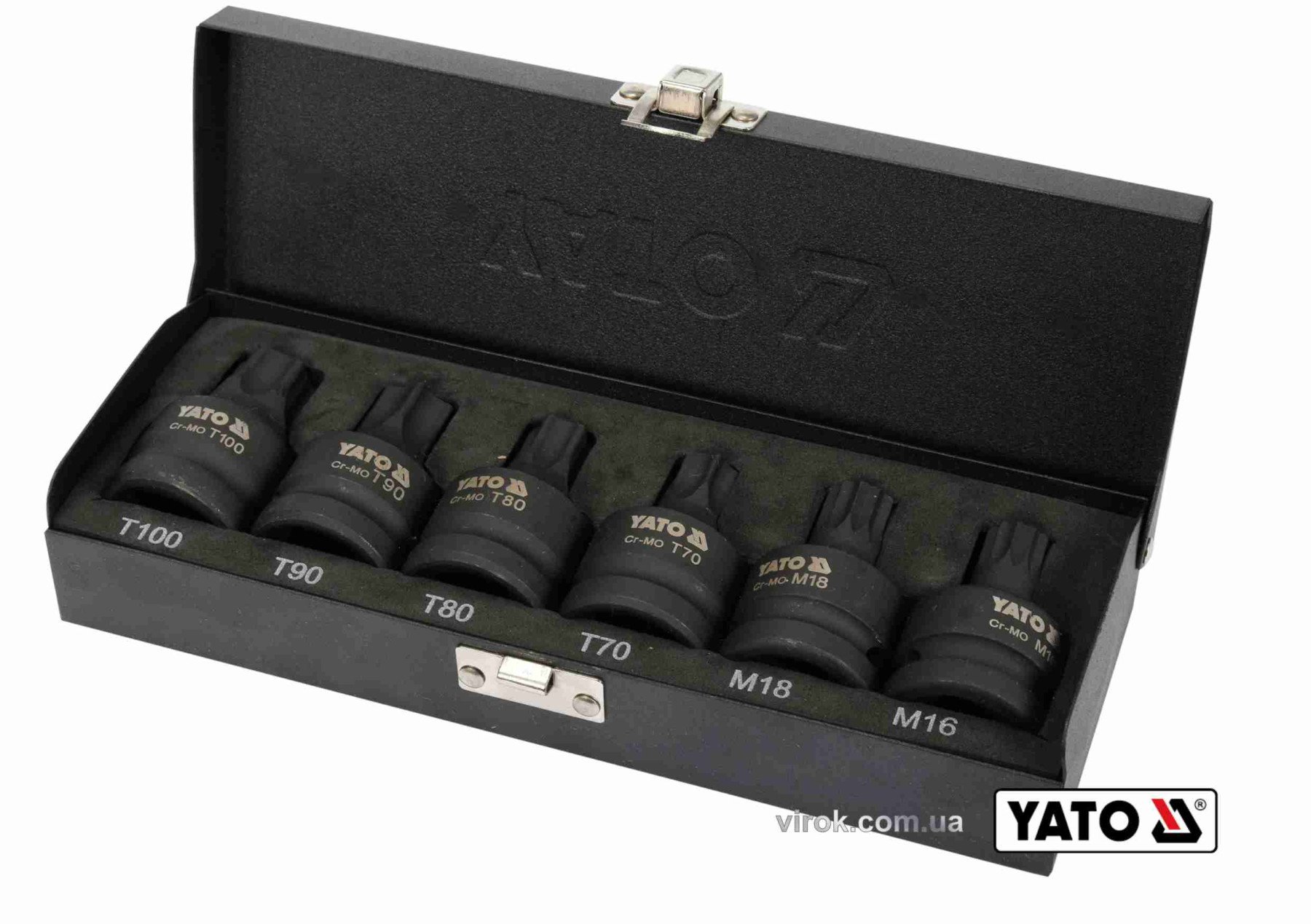 Набір насадок викруткових ударних YATO: TORX/SPLINE T70-100, M16-M18. квадрат 3/4". Cr-Mo. 6 Од [10]