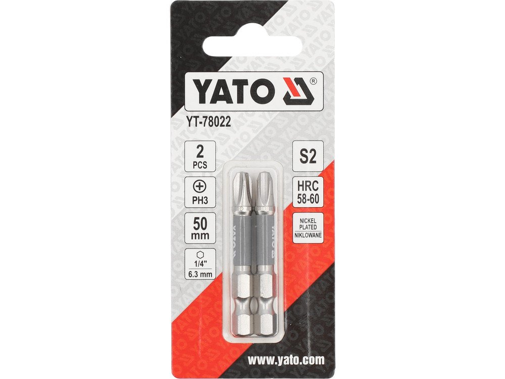 Насадка викруткова YATO PH3 х 50мм. HEX 1/4", покрита нікелем, 2шт.[10]