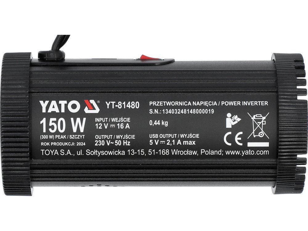 Перетворювач напруги YATO з джерела 12 В DC в 230 В, номінально- 150 Вт AC, піковий- 300 Вт [20]