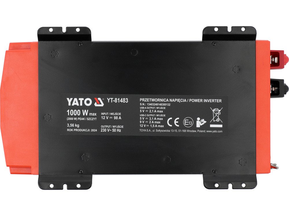 Перетворювач напруги YATO з джерела 12 В DC в 230 В, номінально- 1 кВт AC, піковий- 2 кВт [3]
