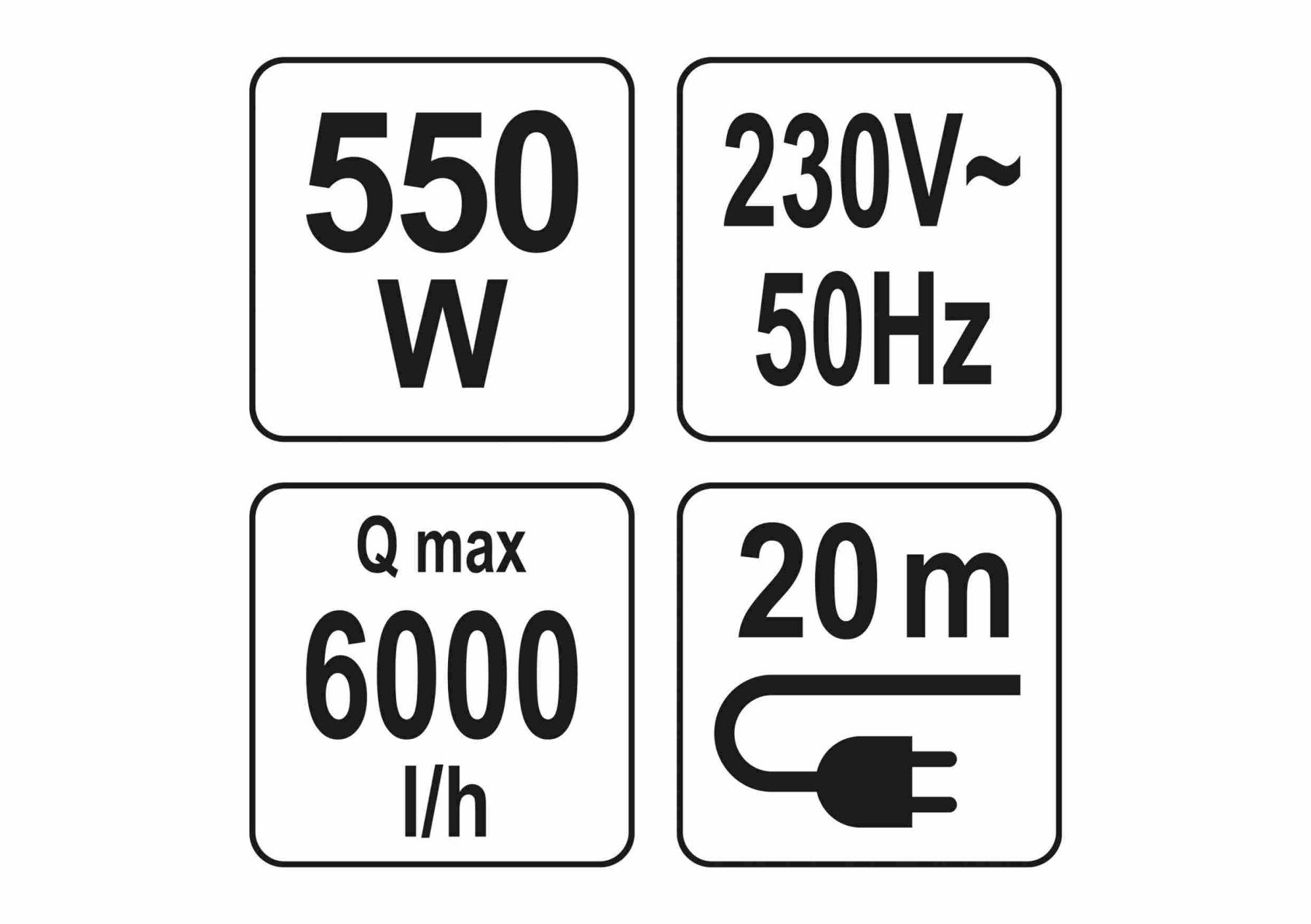 Насос для води глибинний YATO: 550Вт, 6000л/год, макс.висота- 50м, макс.глибина- 80м, кабель-20м [1]