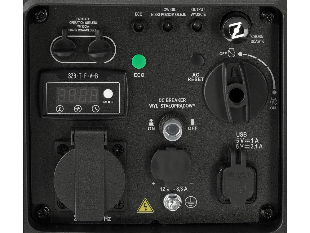 Генератор струму бензиновий інверторний YATO: P= 1.9 кВт, U= 230 В (AC) і 12 В 8,3А (DC), бак- 4 л