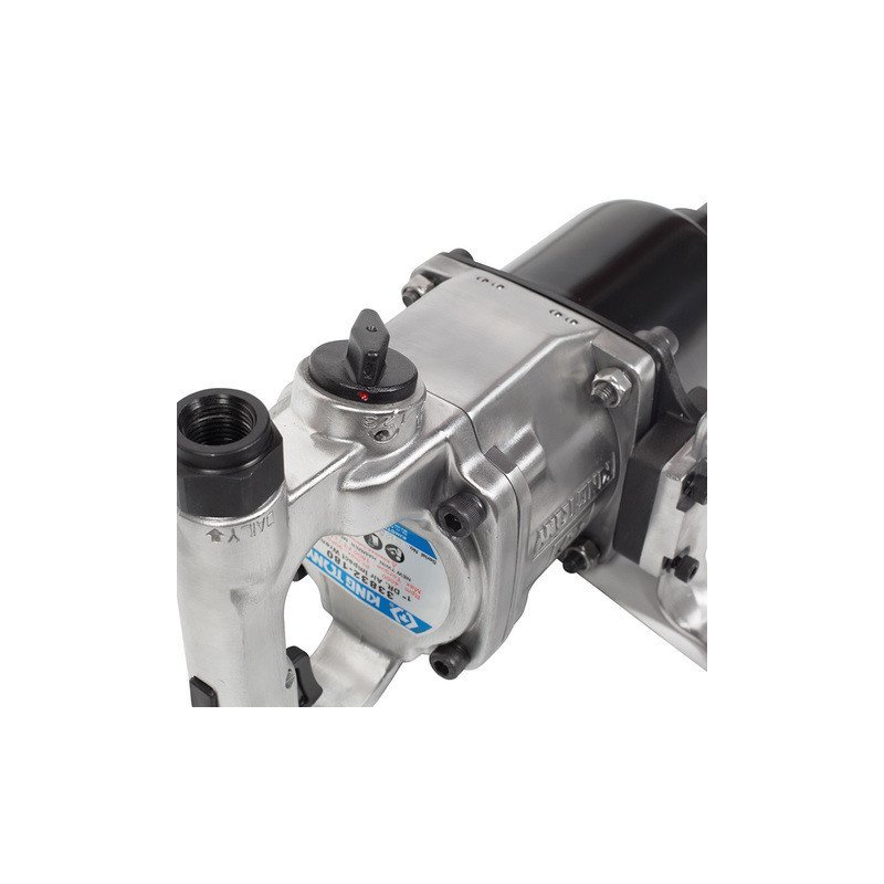 Особливості гайковерта Кінг Тоні 33832-180 Ударний механізм «Подвійний молот» та подовжений вал розкривають потенціал пневматичного обладнання. Працювати з гайковёртом зручно у важкодоступних місцях з елементами кріплення великих розмірів. Перед такою потужністю не встоїть метиз, що заржавів або прикипіл. Корпус інструменту виготовлений із легкого алюмінієвого сплаву. Вал із посадковим квадратом – із хромомолібденової сталі. Для зручності роботи є знімна рукоять, що допомагає утримувати габаритний інструмент на вазі слюсарю. Підведення стисненого повітря та випуск надлишків знаходяться на нижній частині основної рукоятки.