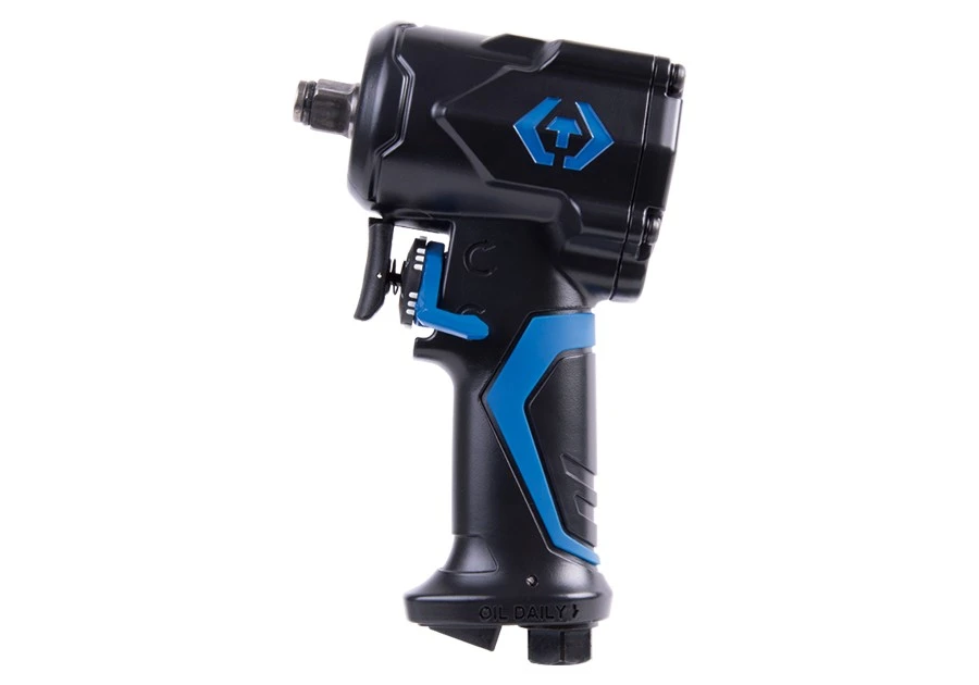 Вільне обертання: 9000 об/хв Максимальне зусилля: 678 Нм Загальна довжина: 109 мм Внутрішній діаметр шлангу: 10 мм Робочий тиск: 6.2 бар Споживання повітря: 142 л/хв Вага: 1,3 кг Пневматичний гайковерт 1/2" міні підвищеної потужності 678 Нм – найкращий помічник слюсаря в автосервісі. Ручний інструмент призначений для відкручування або затягування гайок і болтів у різьбових з'єднаннях. підприємств, що мають на балансі легковий та вантажний автотранспорт. Працювати з ручним інструментом для задоволення. Компактність та мала вага – переваги пневматичного обладнання. Плавний спуск із вбудованим регулятором обертів доповнений трипозиційним фіксатором швидкостей. Тут же винесено перемикач для реверсу. Ергономічна рукоять прогумована - пневматичний гайковерт 1/2" ідеально лягає в руку. Зручно реалізовано скидання зайвого повітря - у нижній частині рукоятки, поряд зі штуцером. Легована інструментальна сталь є секретом успіху виробника King Tony. Доданий до складу металу нікель, хром та молібден, обіцяють надійність та довговічність ручному інструменту тайванського бренду. Пневматичний гайковерт супроводжується сертифікатом якості та офіційною довічною гарантією заводу-виробника.