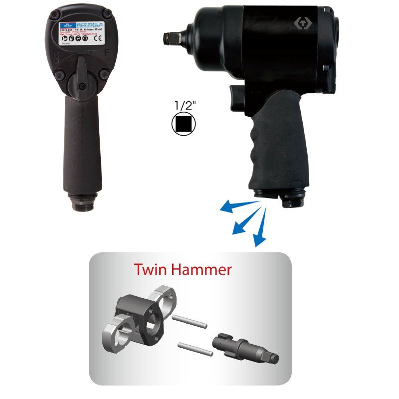 Пневматичний гайковерт King Tony (33433-065) – це ручний інструмент для роботи з елементами різьбового з'єднання. Особливість обладнання у компактних розмірах та відносно високої потужності. Завдяки ударному механізму «подвійний молот», інструмент швидко і ефективно зриває гайки і болти, що прикипіли або заіржавіли.