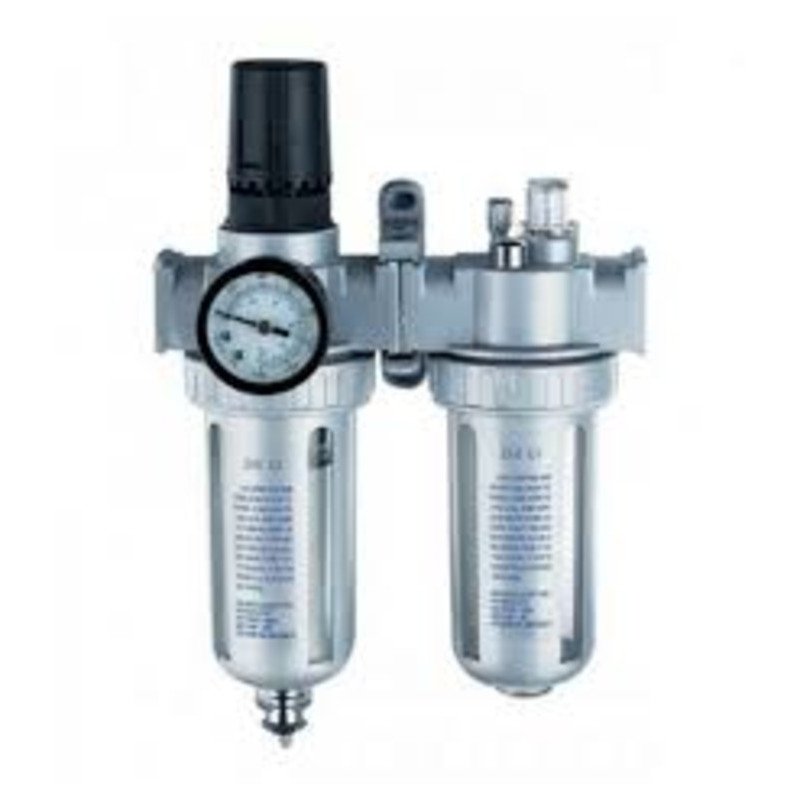 Блок підготовки повітря служить для очищення стисненого повітря від пилу та вологи, регулювання та контролю тиску та розпилення в системі стисненого повітря олії для змащування інструменту. Діаметр різьблення 1/2". Регулювання тиску 0-10bar. Max вхідний тиск: 215 psi - 15bar