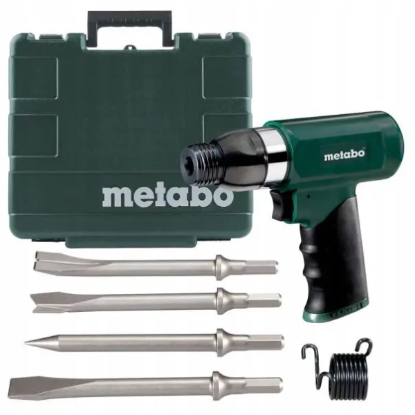 - Вага 2 кг Комплектація вставний ніпель 1/4« EURO, вставний ніпель 1/4» ARO/Orion, вставний ніпель 1/4» ISO, штуцер 10 мм і шланговий затискач згідно з ISO 111484 зубила, швидкозатискна пружина, флакон масла, пластиковий кофр Кількість ударів 3000 уд/хв Хвостовик 10 мм Тиск 6,2 бар Розхід повітря 280 л/хв -