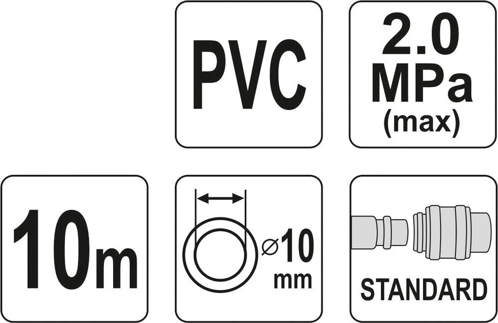 YATO Шланг пневматичний ПВХ з швидкоз'єднув. наконечниками; Ø= 10 мм, макс. тиск 20 Bar, l= 10 м