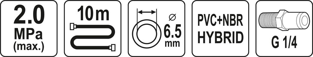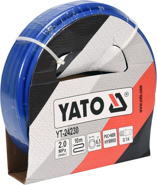 YATO Шланг пневматичний гібридний (ПВХ+БНК) : Ø6.5 мм x 10 м, Ø=1/4", тиск ≤ 2 MPa, різьбов. з'єдн.