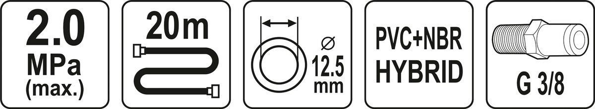 YATO Шланг пневматичний гібридний (ПВХ+БНК) : Ø12.5 мм x 20 м, Ø=3/8", тиск ≤ 2 MPa, різьбов. з'єдн.