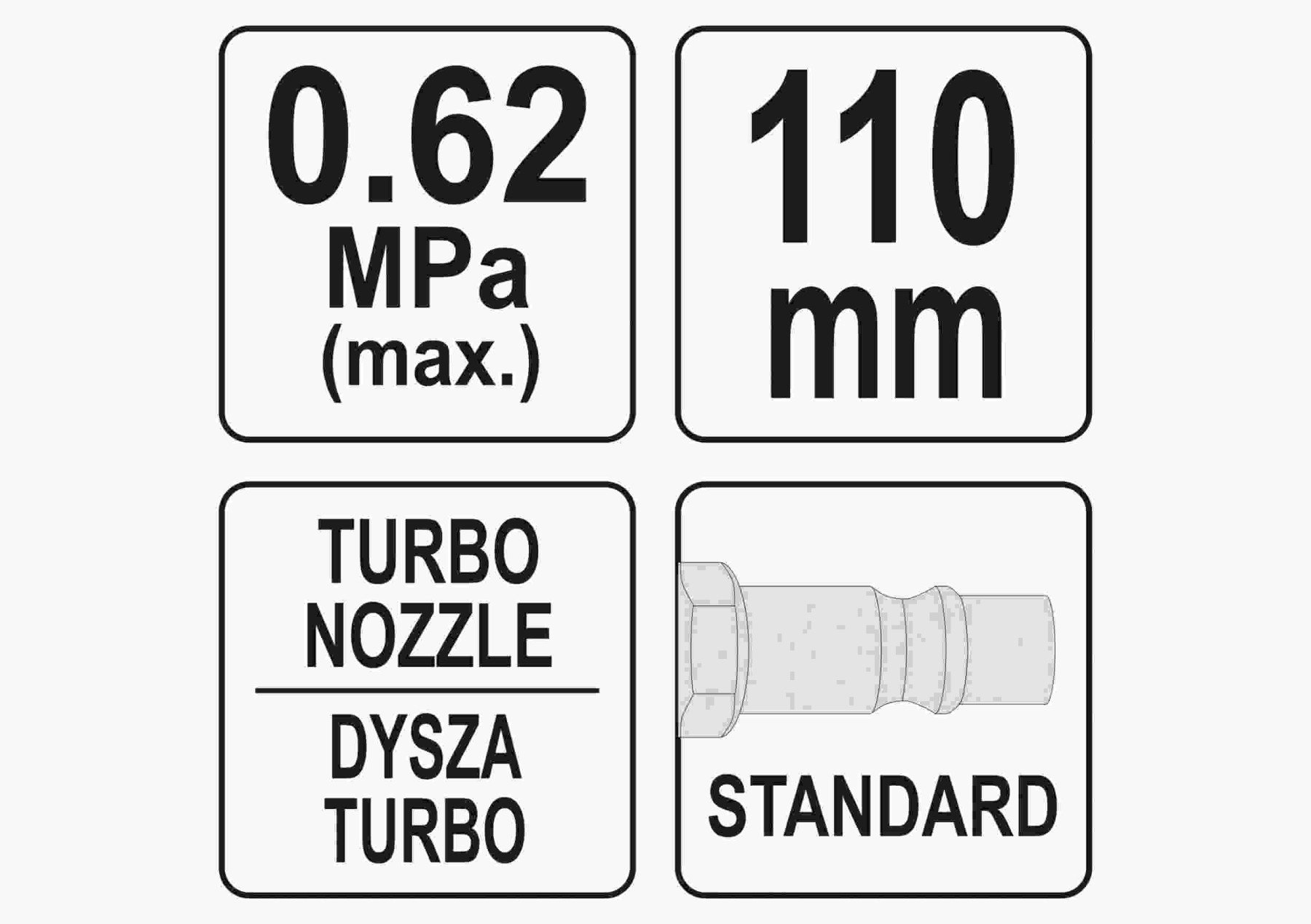 YATO Пістолет пневматичний продувальний з турбо-соплом l= 110 мм, Ø=1/4", для тиску- 0.62 МПа