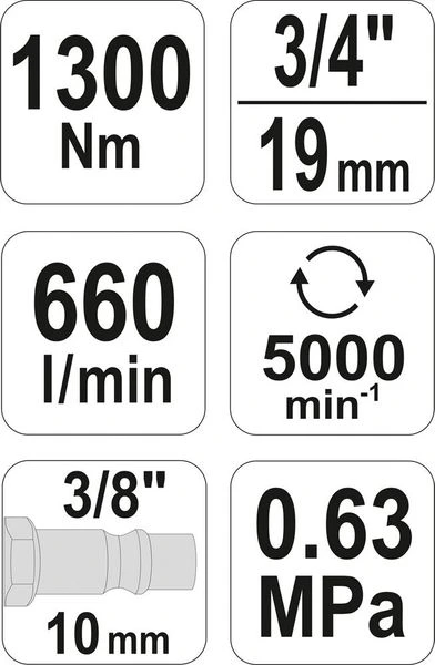 Профессиональный пневматический гайковерт YATO. Максимальная мощность, получаемая при давлении 6 бар, составляет 1300 Нм. Гайковерт пневматический предназначен для работы с резьбовым крепежом. Инструмент позволяет не только сэкономить время и силы, но и значительно повышает долговечность элементов резьбовых соединений. Конструкция и детали гайковёрта изготовлены с высокой точностью, что обеспечивает сохранение заявленных технических характеристик в течение длительного срока эксплуатации.