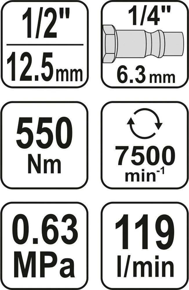 YATO Гайковерт ударний пневматичний : квадрат 1/2", F=511 Nm [10]