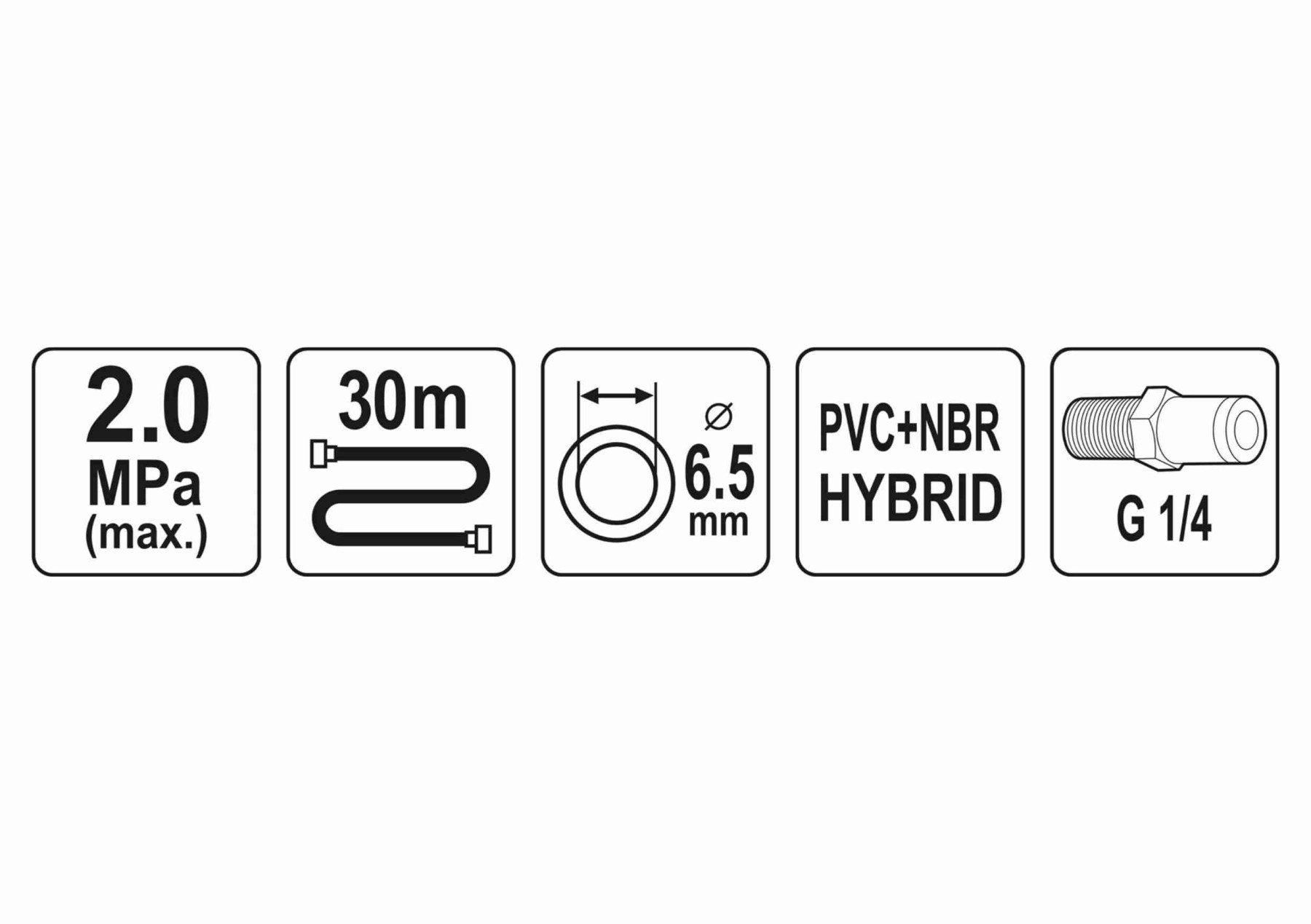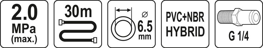 YATO Шланг пневматичний гібридний (ПВХ+БНК) : Ø6.5 мм x 30 м, Ø=1/4", тиск ≤ 2 MPa, різьбов. з'єдн.