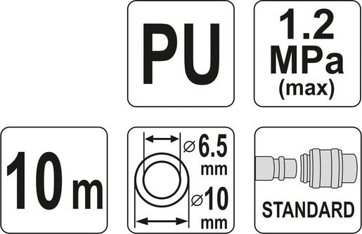 YATO Шланг пневматичний спіральний швидкоз'єднуваний: Ø= 6.5/10 мм, ≤12 Bar, l= 10 м. поліуретан.